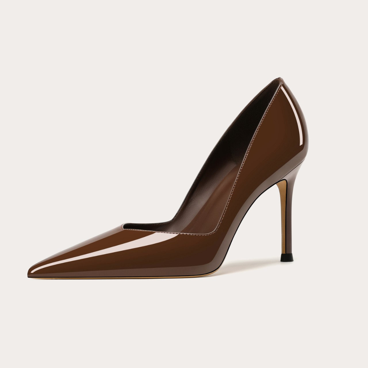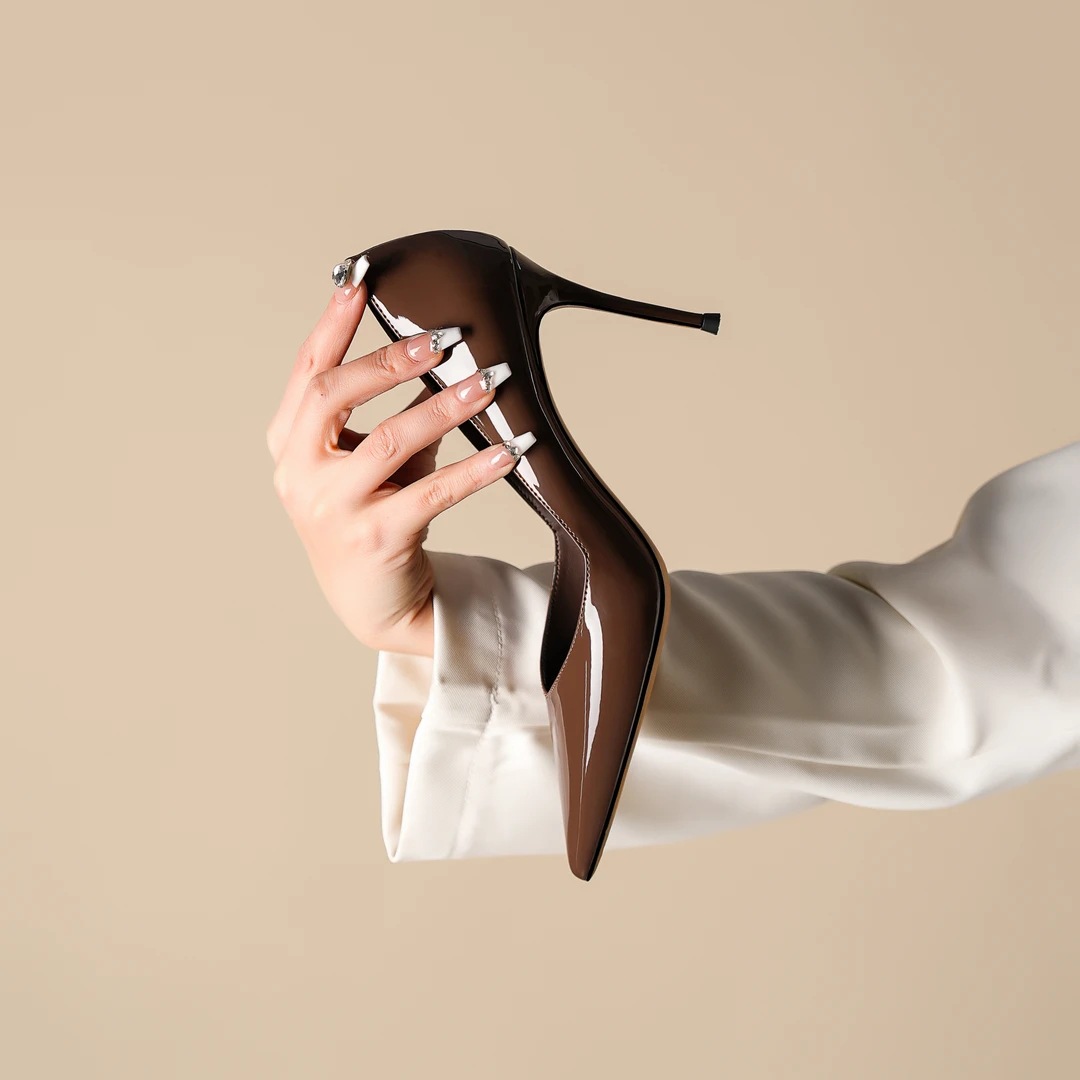 너트 다크 브라운 새로운 스타일 얇은 뒤꿈치 특허 가죽 V-입이 피곤하지 않은 편안한 발 섹시한 밤 전문 싱글 신발스토어 가기