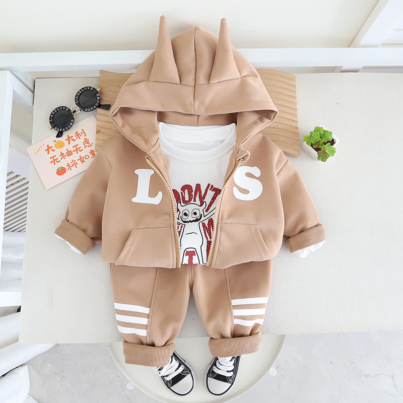 어린이 의류 소년 가을 세트 2025 새로운 어린이 봄과 가을 캐주얼 코트 3 피스 만화 세트