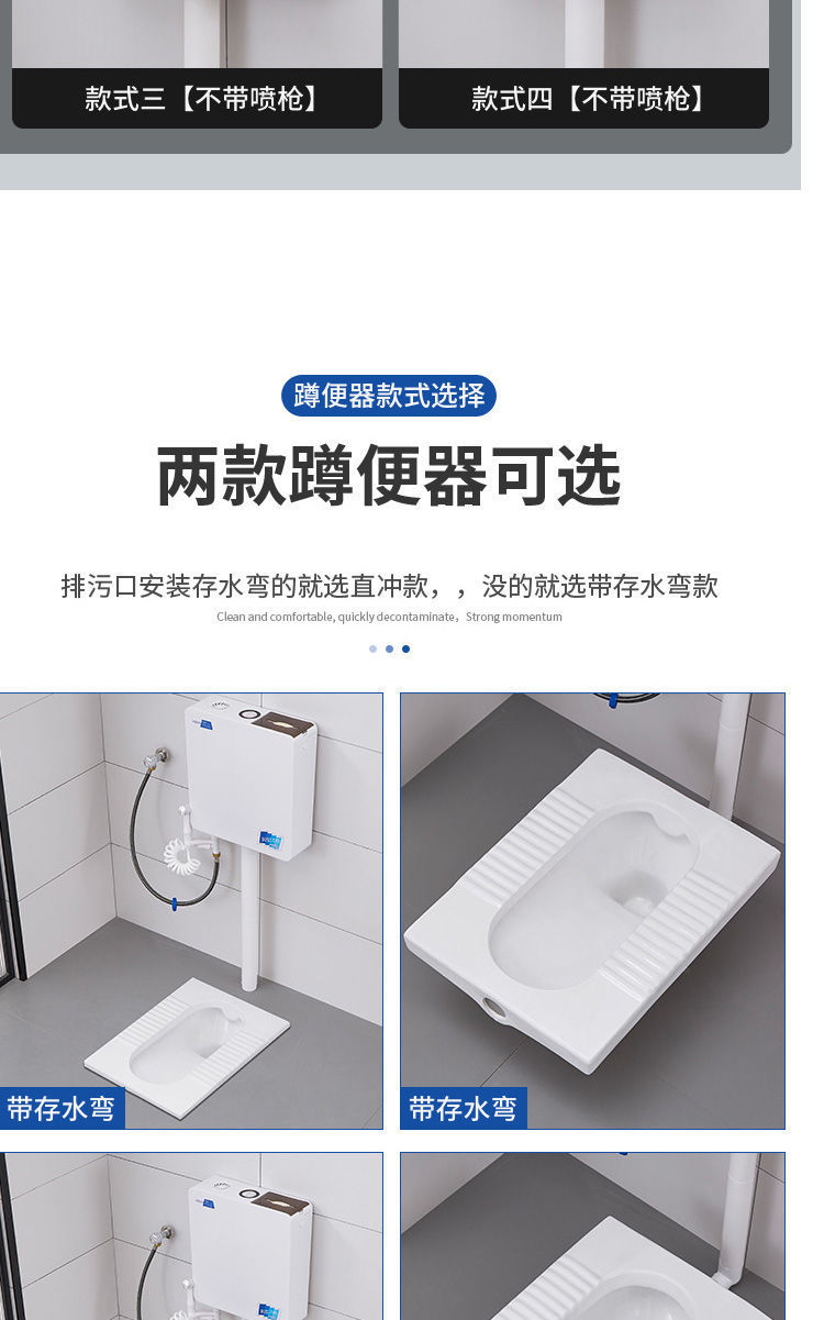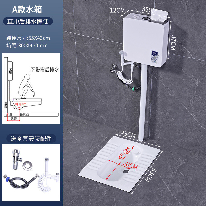 • 새로운 물탱크 + 스프레이 건이 포함된 직접 세척 및 후방 배수 쪼그리고 앉는 변기