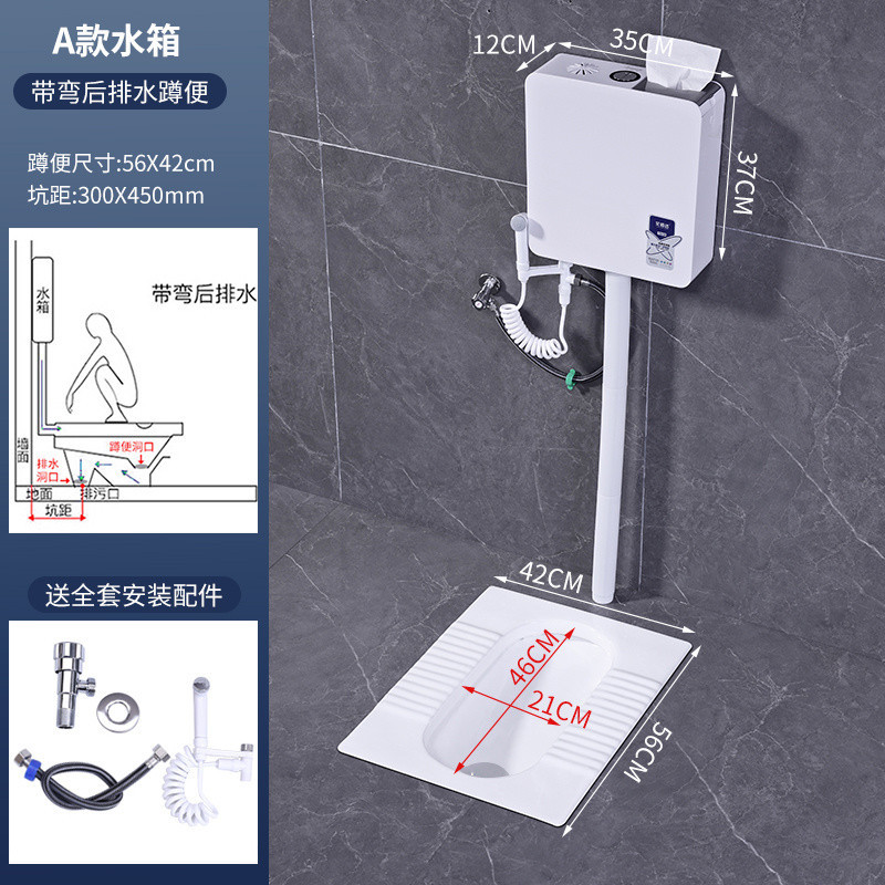 • 새로운 물탱크 + 스프레이 건이 포함된 S자형 냄새 방지 후방 배수 쪼그리고 앉는 변기