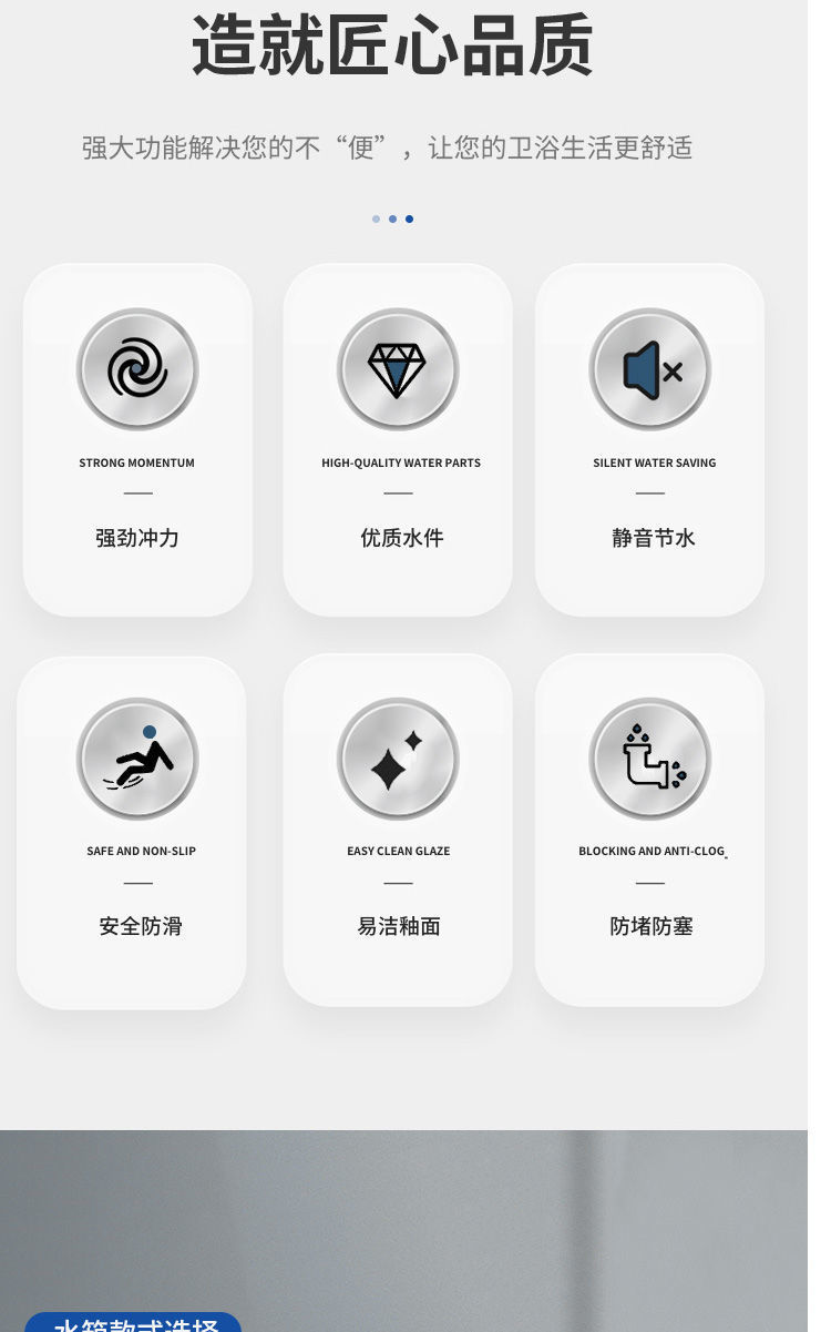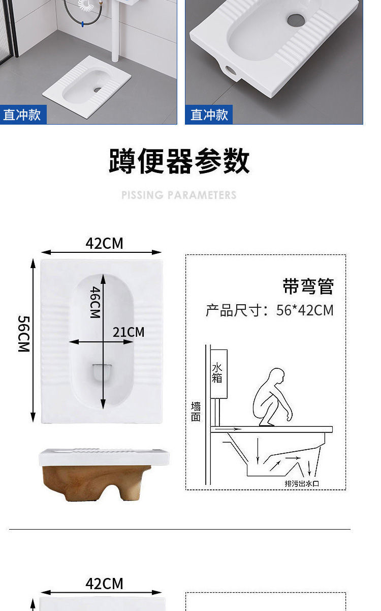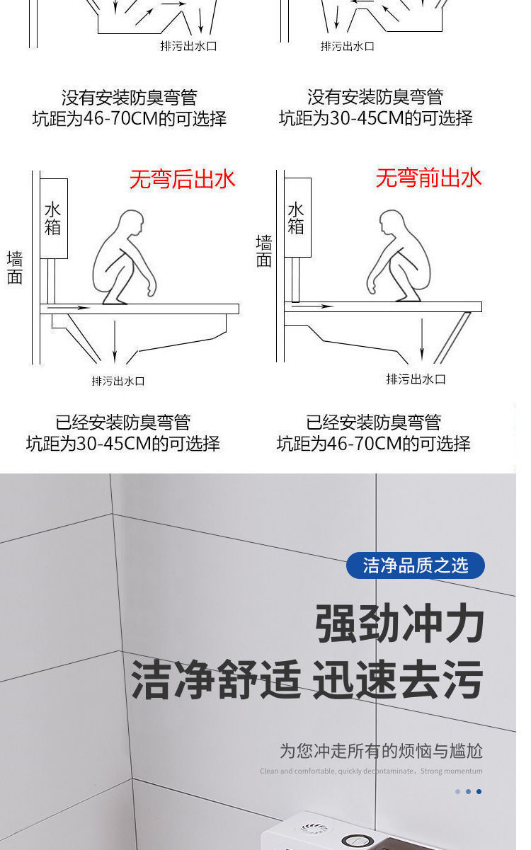 • 고품질 물탱크 + 직접 세척 전 배수 쪼그리고 앉는 변기
