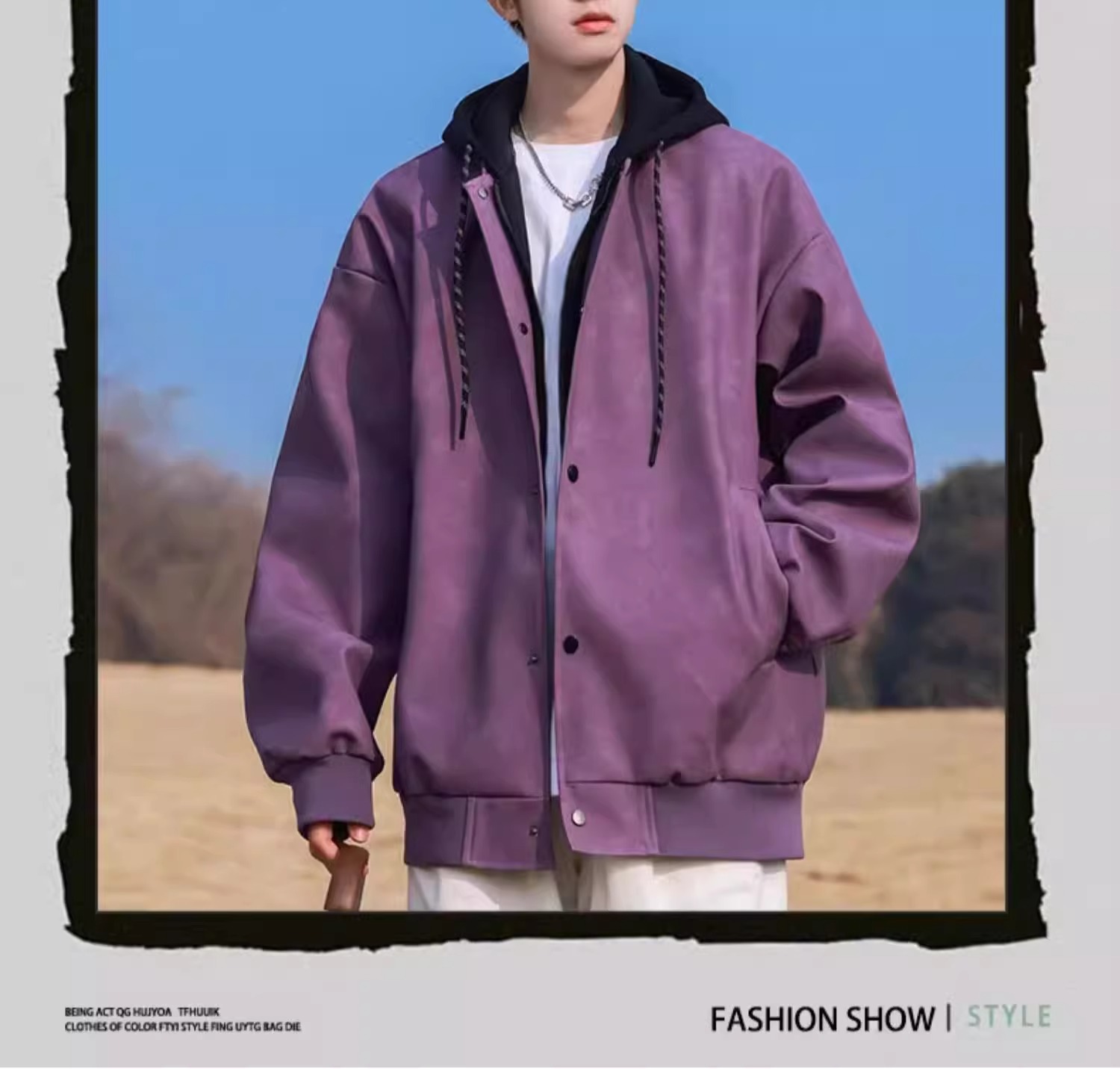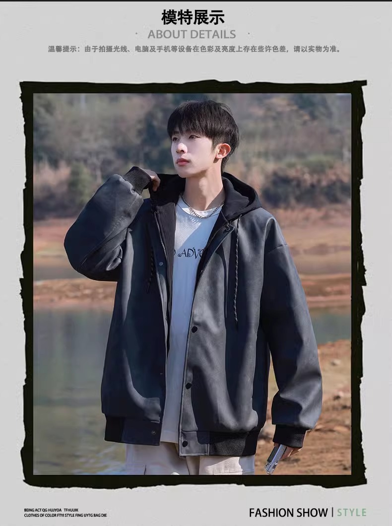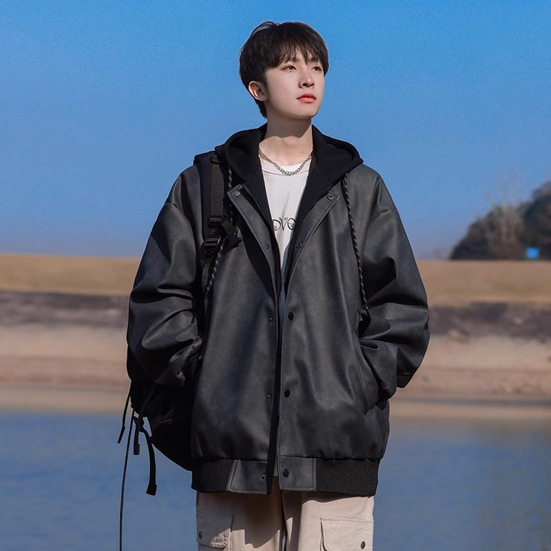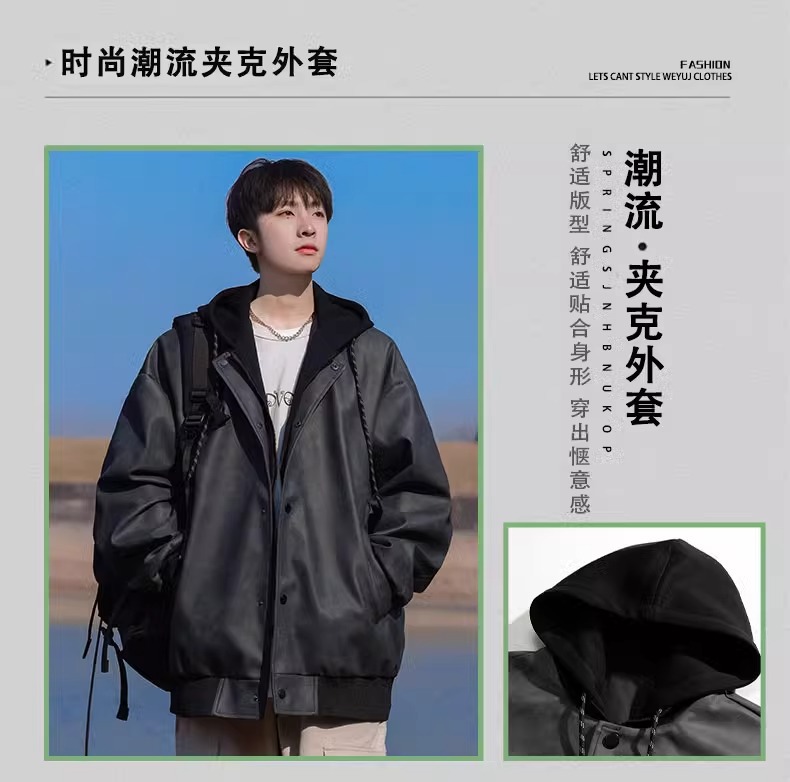 NASA 가짜 2 피스 후드 재킷 남자 봄 새로운 미국 레트로 바이커 코트 소년을위한 두꺼운 가죽 자켓스토어 가기
