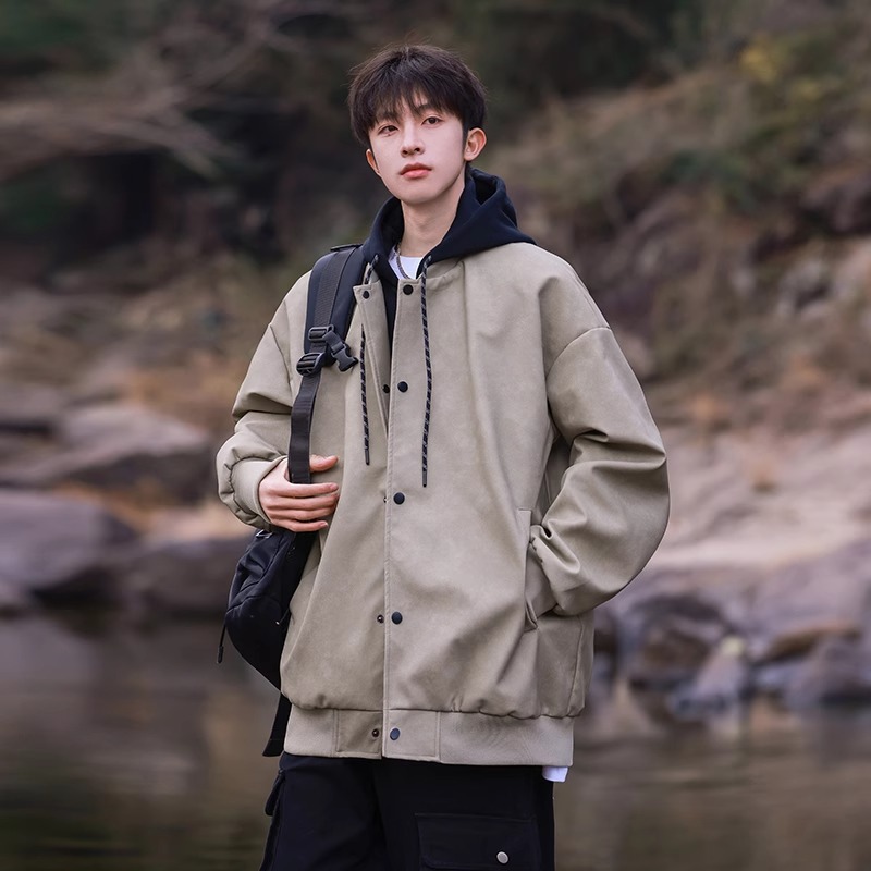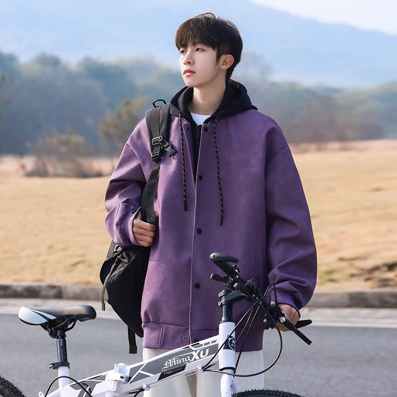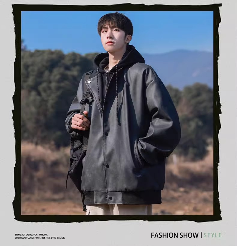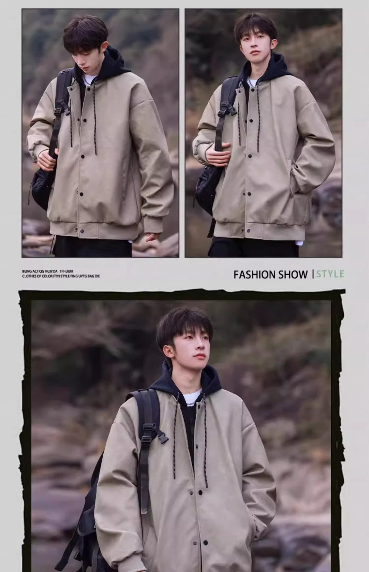 NASA 가짜 2 피스 후드 재킷 남자 봄 새로운 미국 레트로 바이커 코트 소년을위한 두꺼운 가죽 자켓스토어 가기