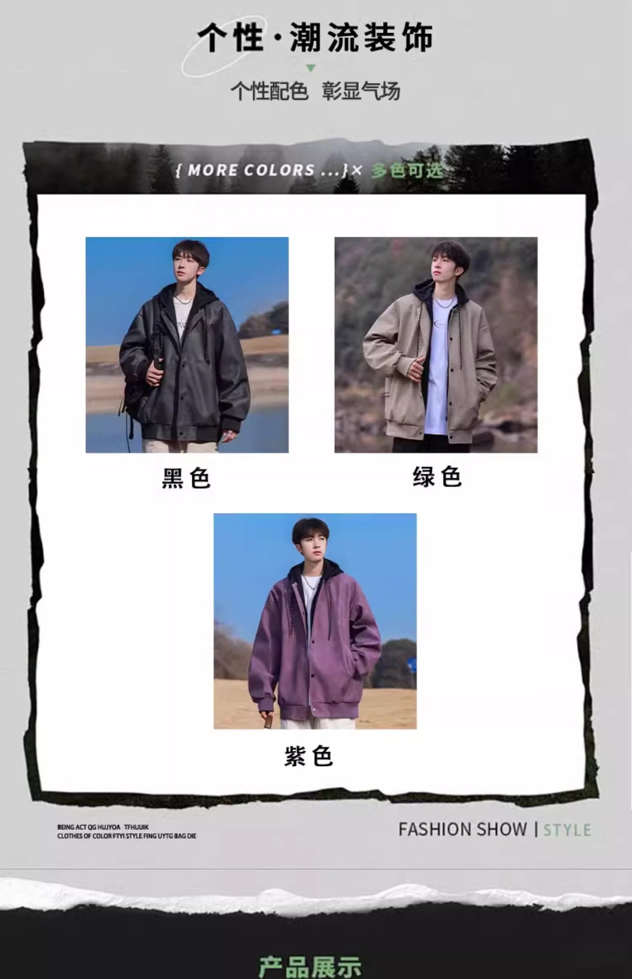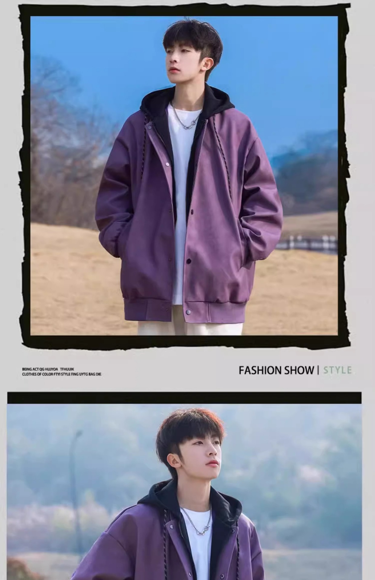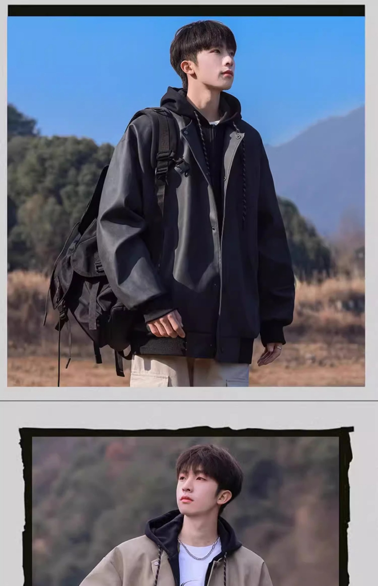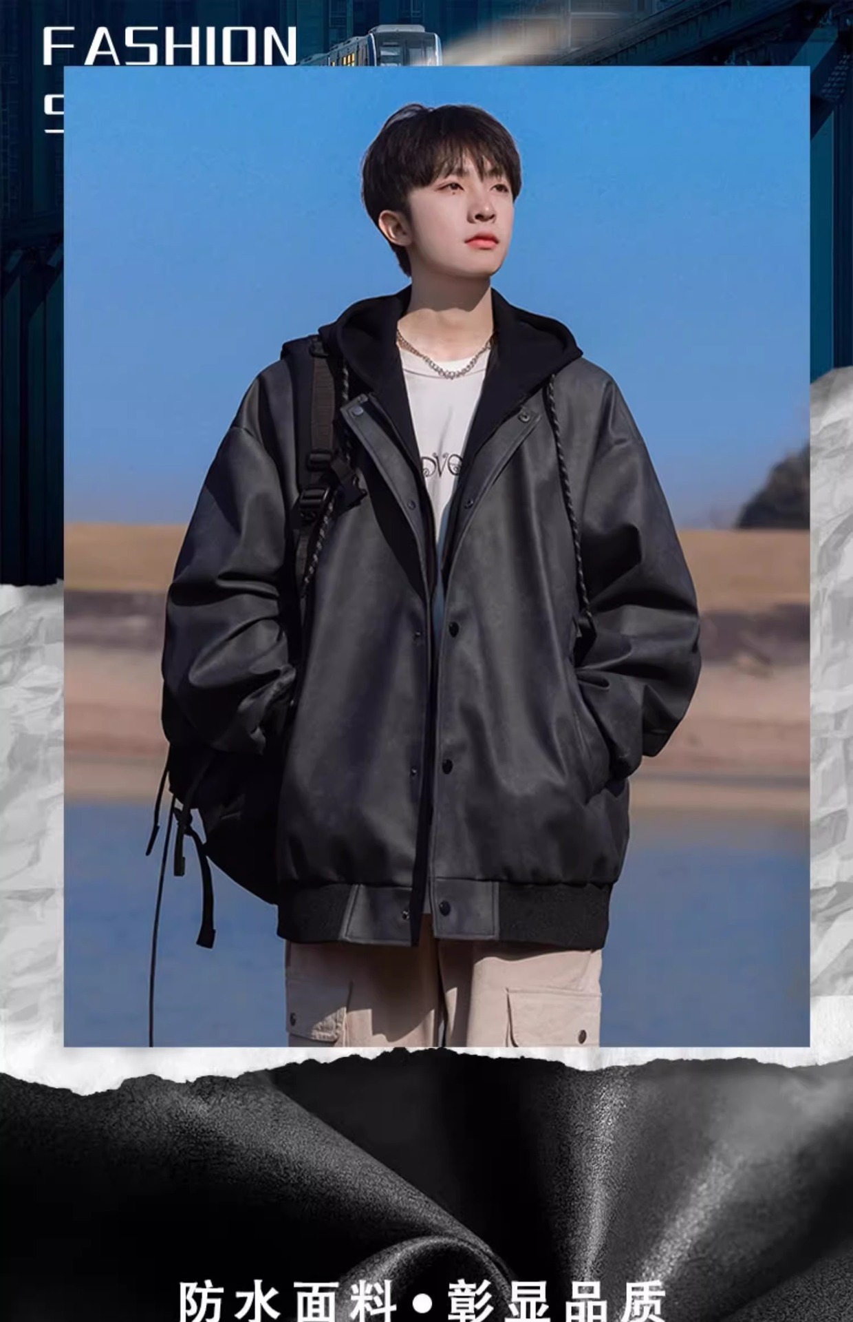 NASA 가짜 2 피스 후드 재킷 남자 봄 새로운 미국 레트로 바이커 코트 소년을위한 두꺼운 가죽 자켓