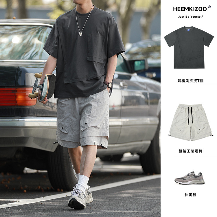 FBUF Elastic Solona Cool 310g 무거운 일본 여름 소년 해체 바람 스티칭 크루 넥 짧은 소매 티셔츠스토어 가기