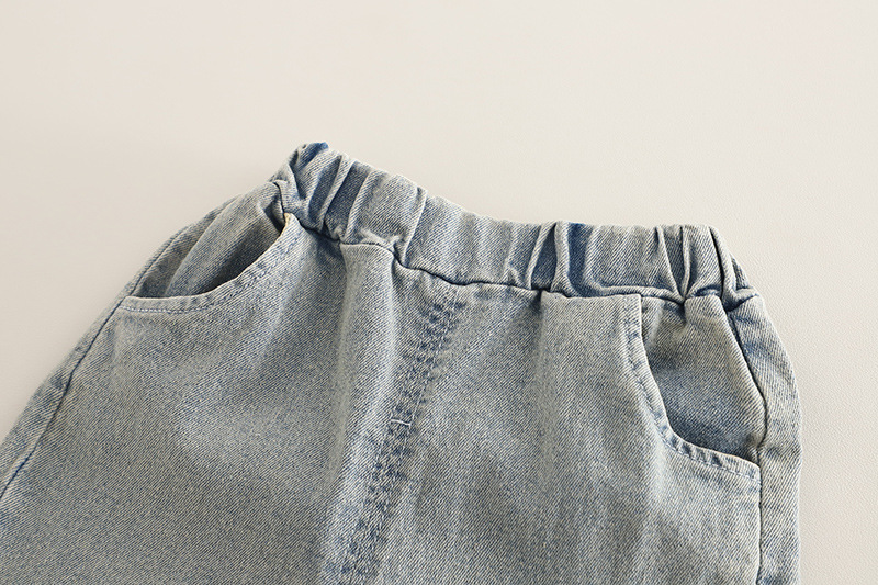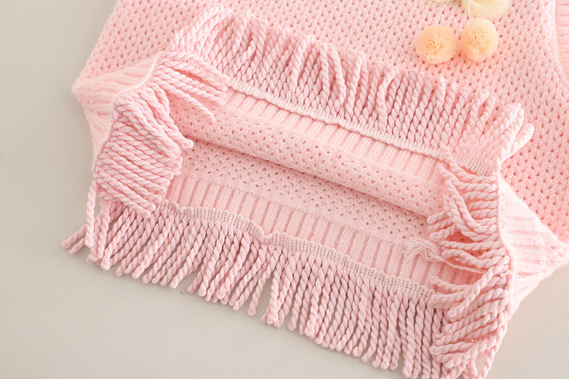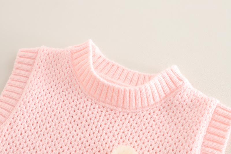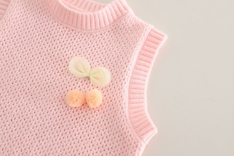소녀 세트 2025 봄 새로운 니트 스웨터 조끼 체리 버블 슬리브 큰 발 청바지 어린이 3 피스 세트스토어 가기