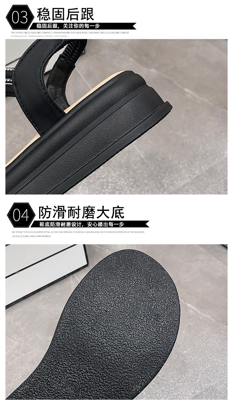라인스톤 비치 샌들 여성 2024 년 여름 한국 스타일 페어리 스타일 두꺼운 단독 의상 스커트 원스트랩 플러스 사이즈 샌들스토어 가기