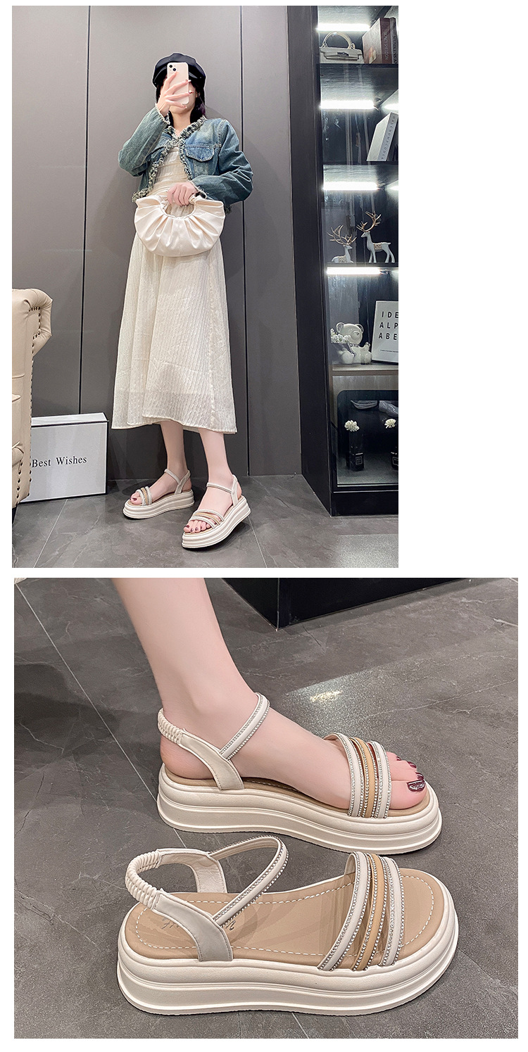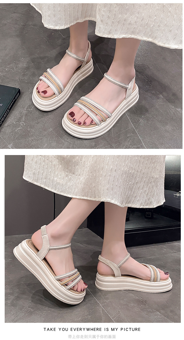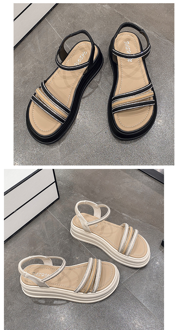 라인스톤 비치 샌들 여성 2024 년 여름 한국 스타일 페어리 스타일 두꺼운 단독 의상 스커트 원스트랩 플러스 사이즈 샌들