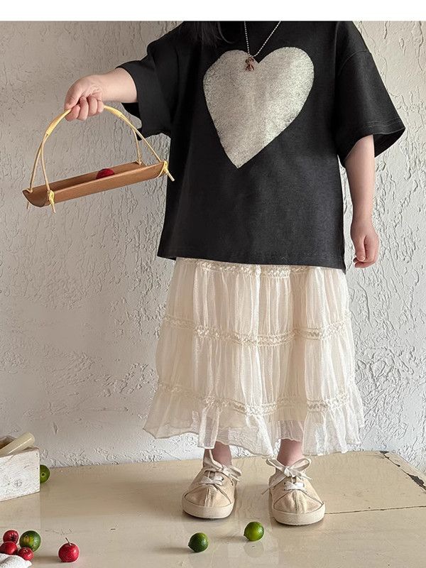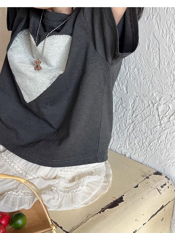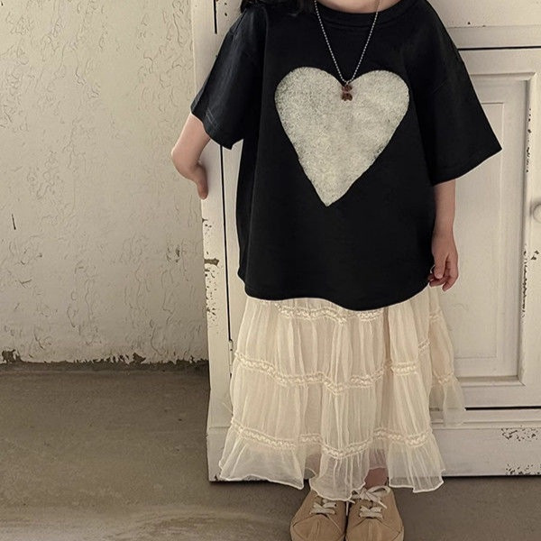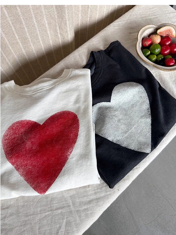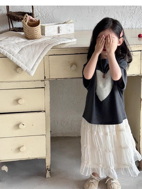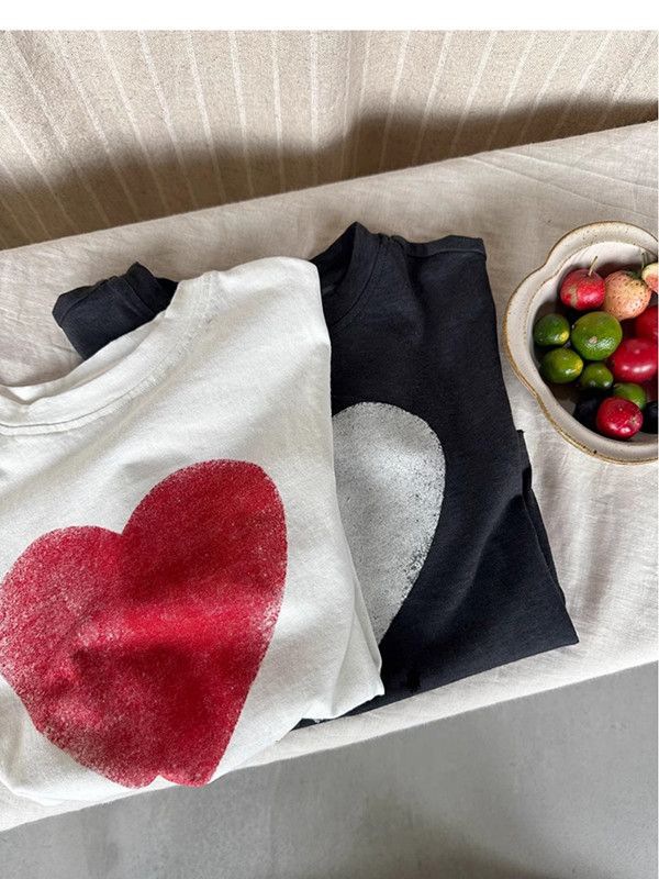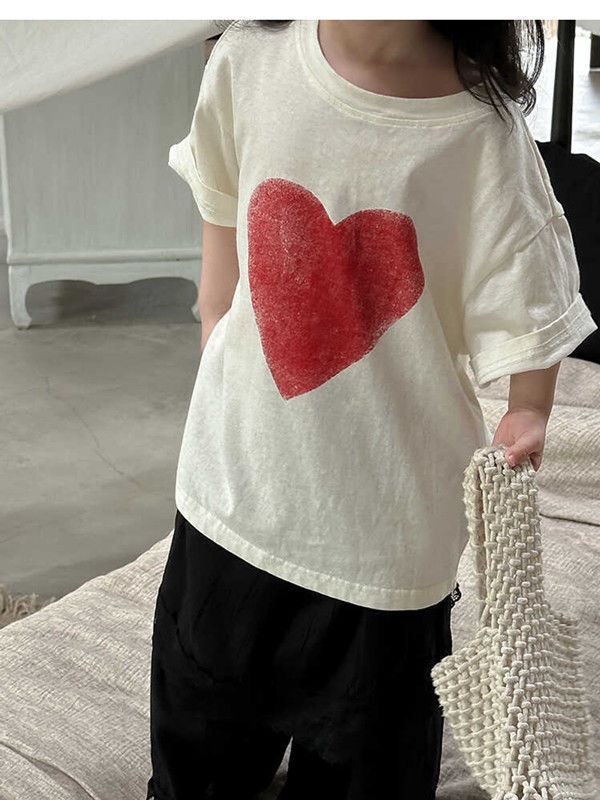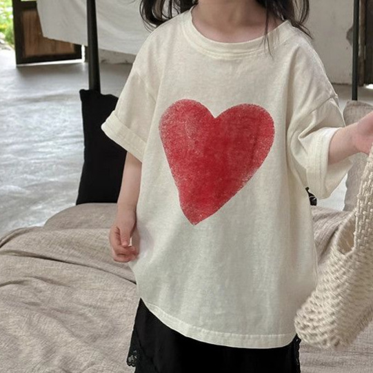소년 소녀 여름 반팔 티셔츠 아기 세련된 어린이 독특한 유행 한국 스타일 사랑 인쇄 유행 반소매 탑스토어 가기