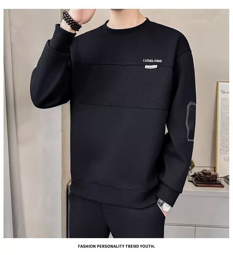 가을과 겨울 캐주얼 니트 바느질 운동복 남성 청소년 테이프 대조 컬러 탑 재킷 느슨한 둥근 목베이스 셔츠스토어 가기