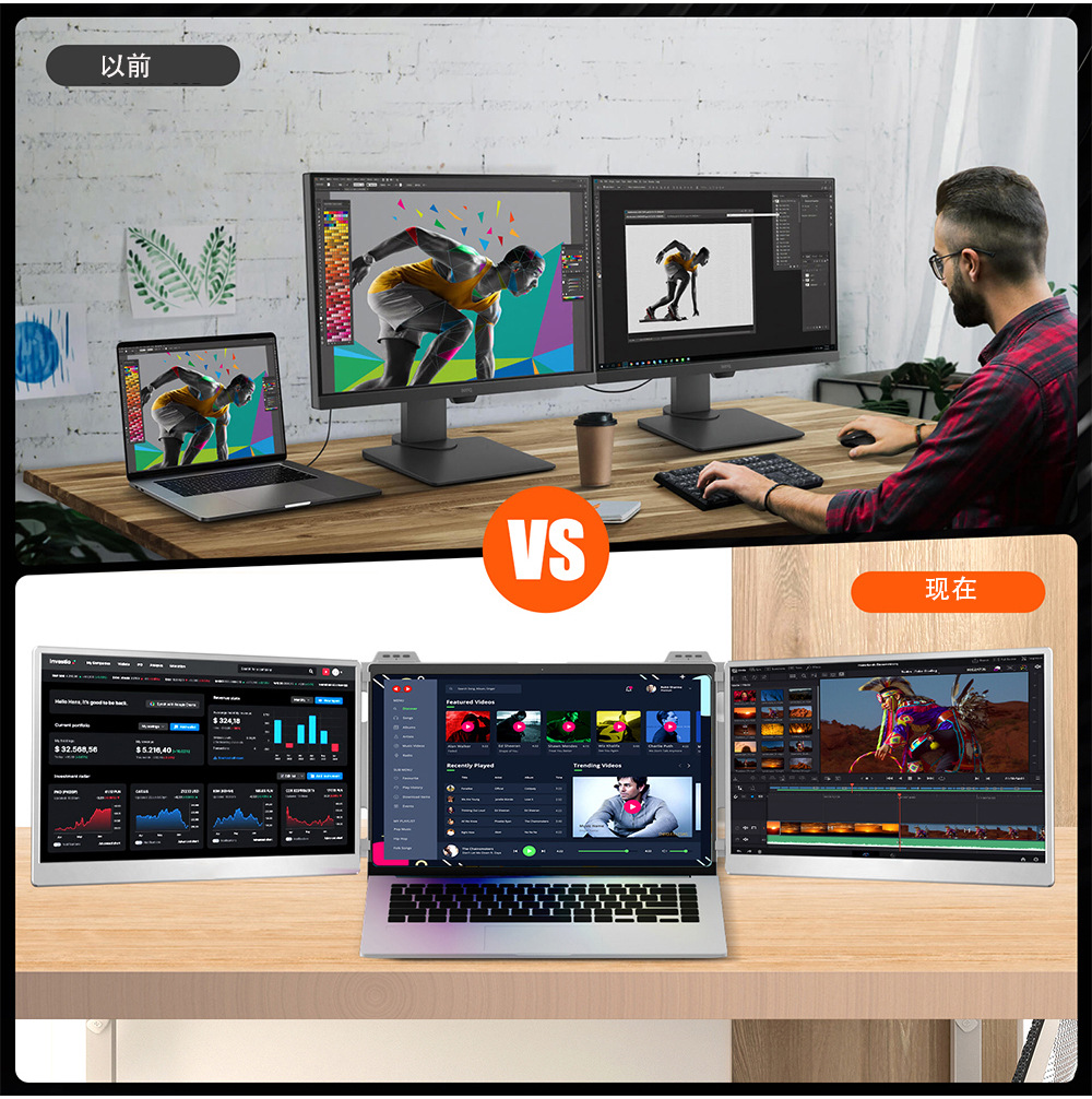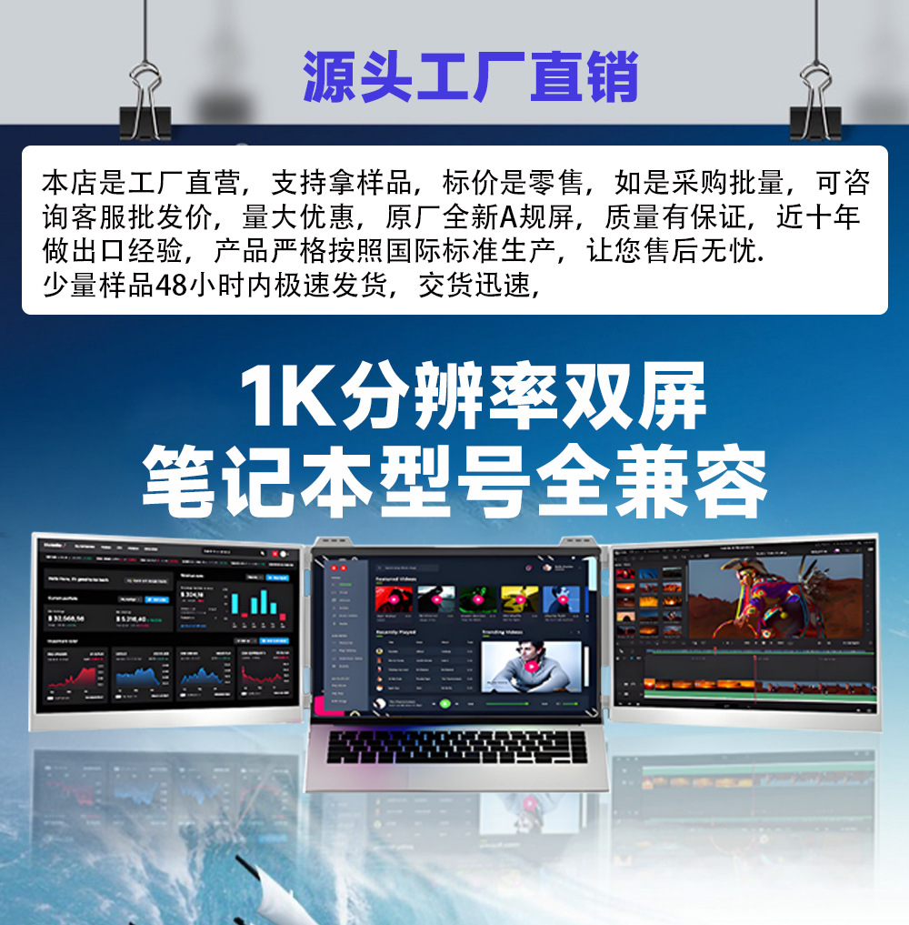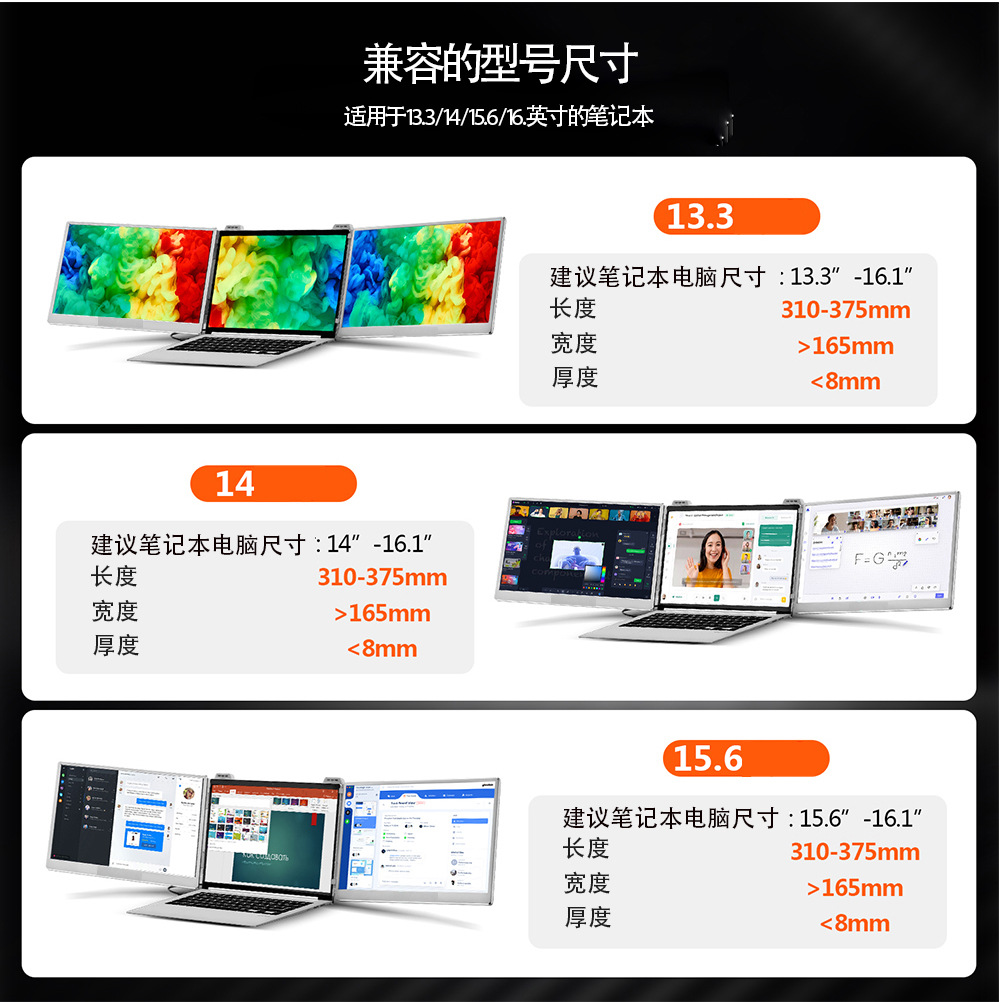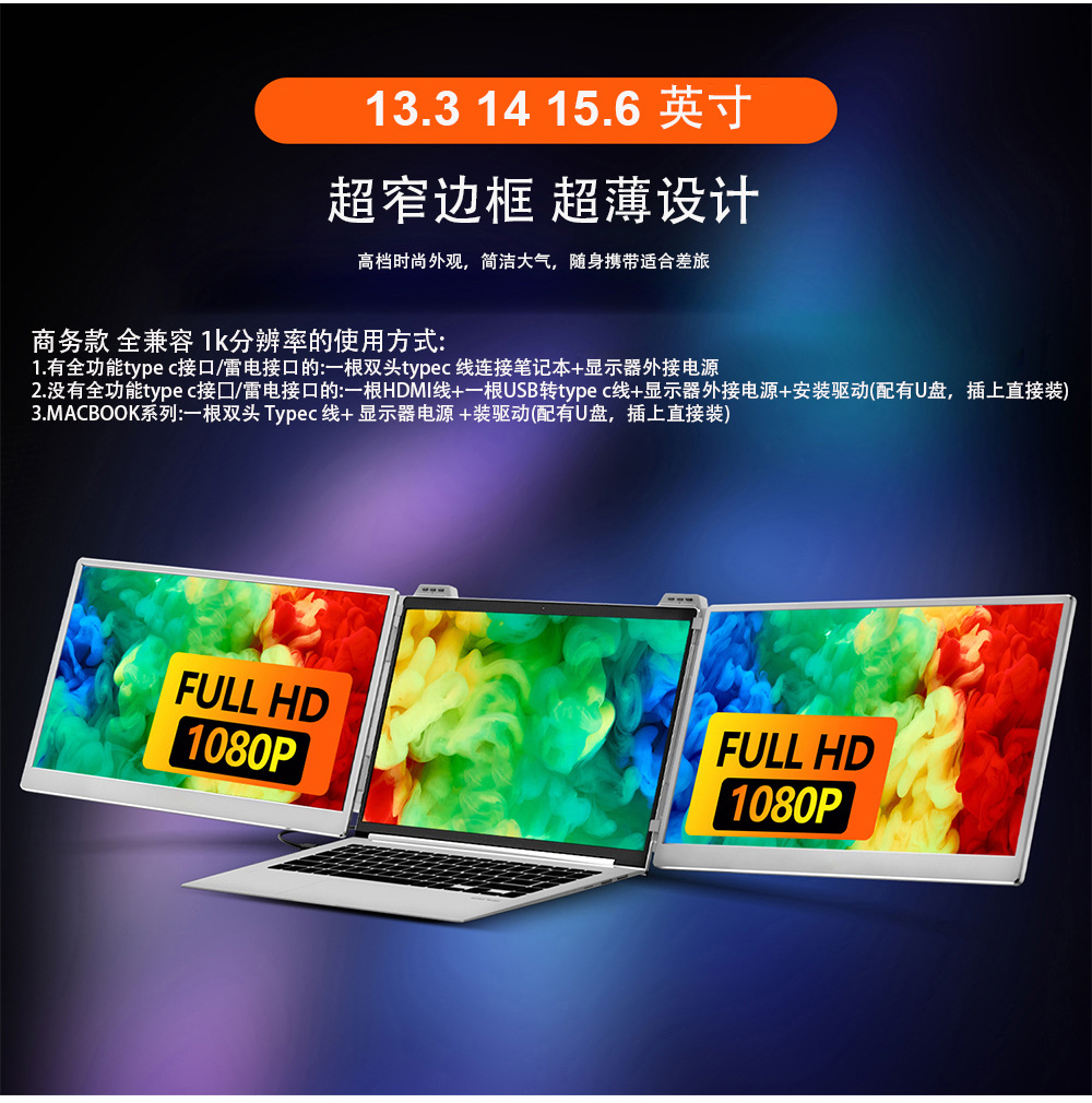 • 13.3inch 듀얼 스크린 1K HDMI+TYPE C 인터페이스, 완벽하게 호환(13.3-16.1inch 노트북에 적합) 비즈니스 모델
