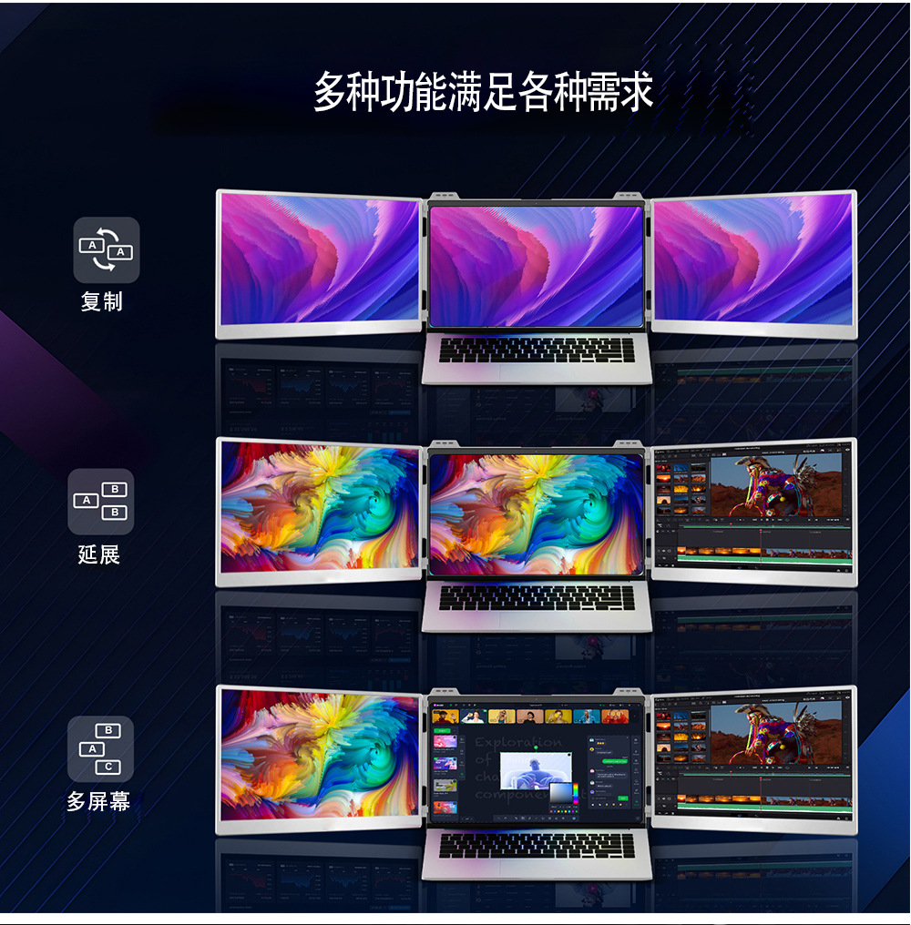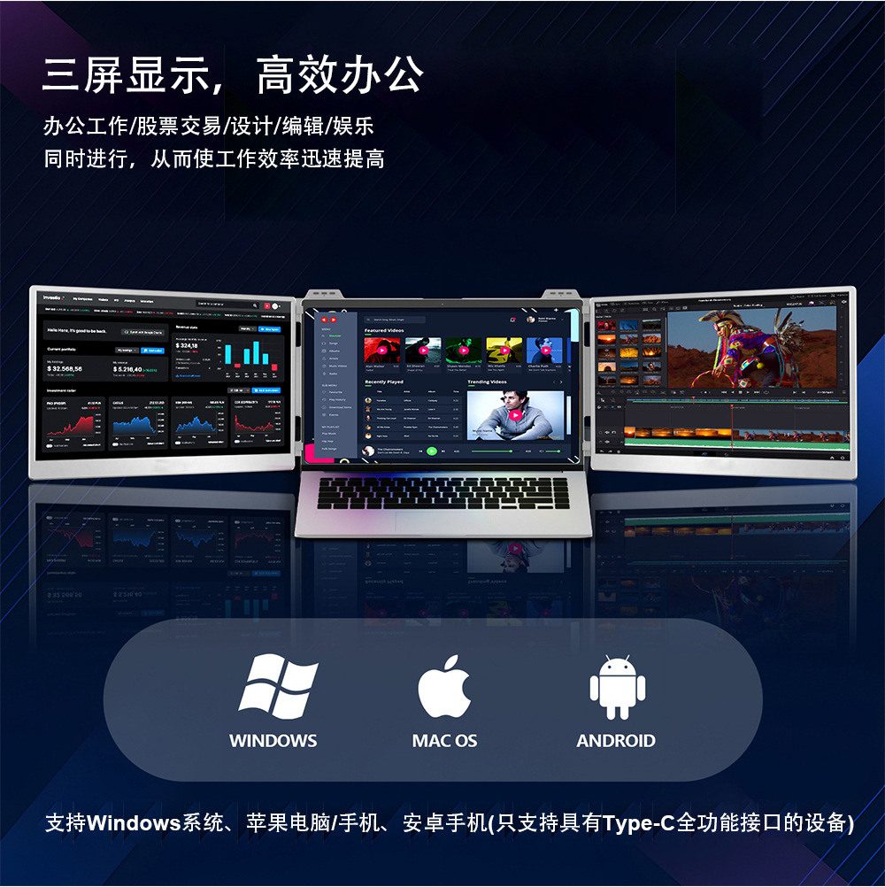 주식 거래 디자인 사무실 디스플레이 HD 높은 색상 영역 휴대용 3 화면 디스플레이 듀얼 스크린 접이식 노트북 확장 화면스토어 가기