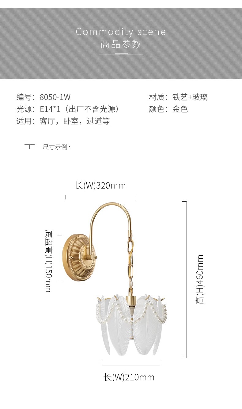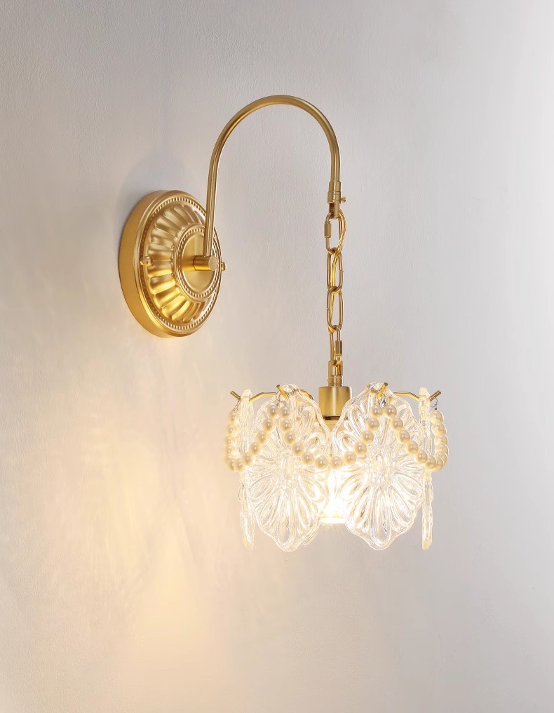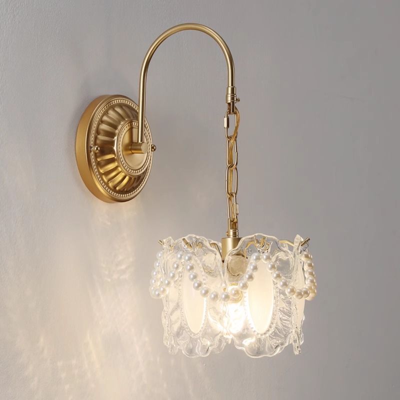 프랑스 스타일 유리 벽 램프 복도 거실 배경 벽 램프 라이트 럭셔리 현대 간단한 따뜻한 진주 침실 침실 램프