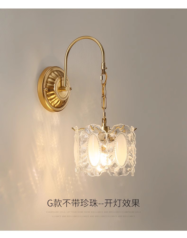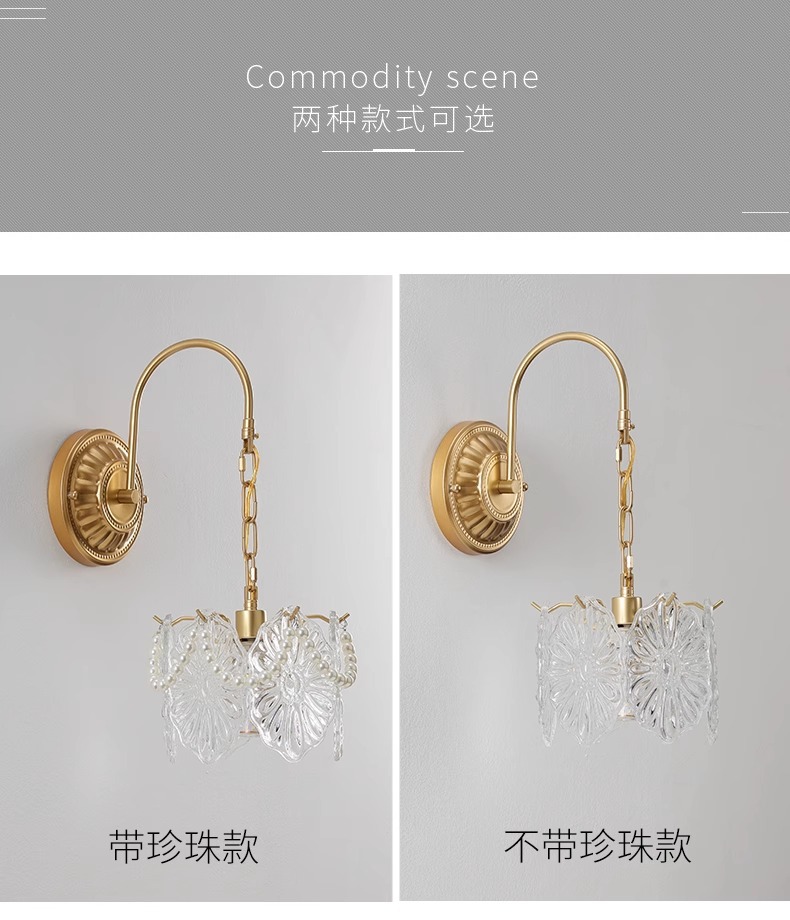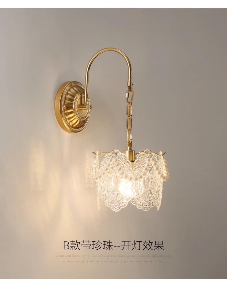 프랑스 스타일 유리 벽 램프 복도 거실 배경 벽 램프 라이트 럭셔리 현대 간단한 따뜻한 진주 침실 침실 램프스토어 가기
