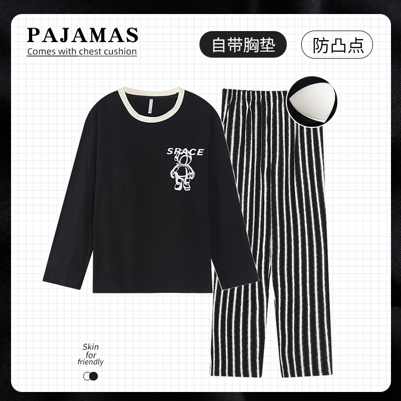 가슴 패드가있는 잠옷 통합 순면 여성의 봄과 가을 여성의 2024 새로운 봄 집 옷 봄과 가을스토어 가기