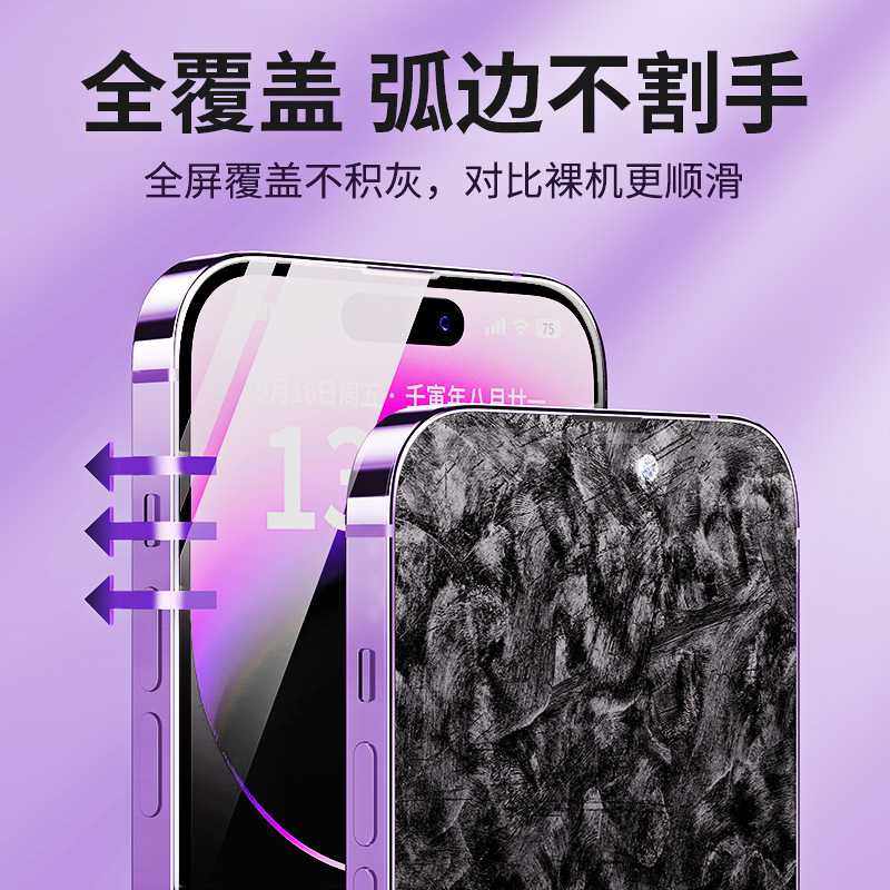 애플 15ProMax HD 얇은 블랙 에지 강화 필름 14pro 먼지없는 14 플러스 휴대 전화 필름 13/12 전체 화면