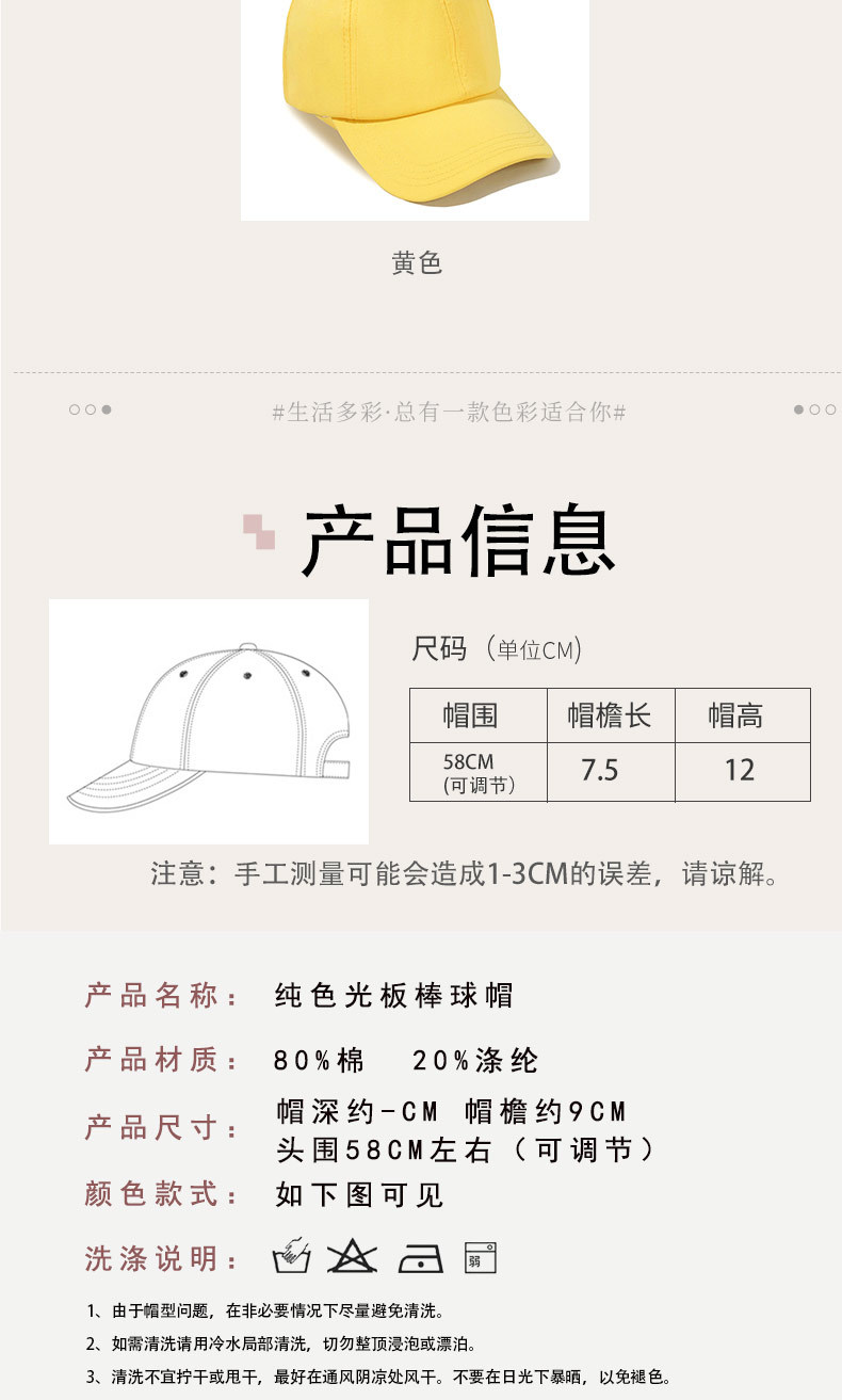 봄과 여름 한국식 캐주얼 올 매치 햇빛 솔리드 컬러 라이트 플레이트 야구 모자 소프트 탑 간단한 얼굴 작은 통기성 모자스토어 가기