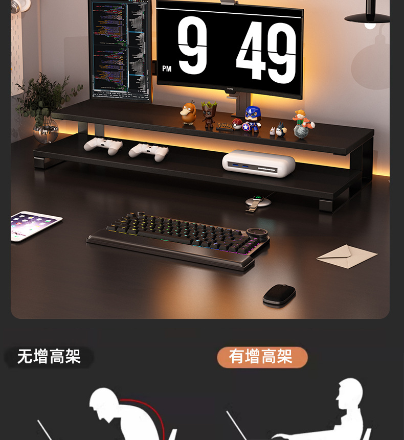 모니터 높은 랙 컴퓨터 데스크톱 스토리지 랙 스크린 기본 지원 선반 노트북 스탠드스토어 가기