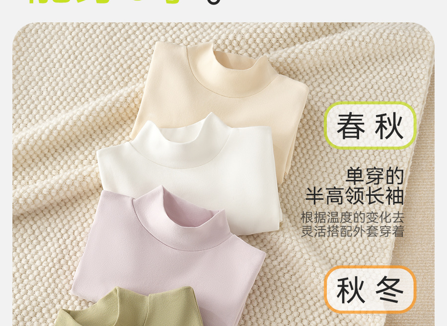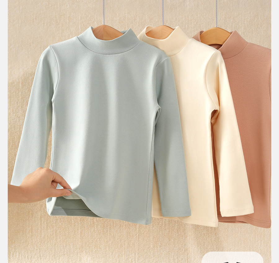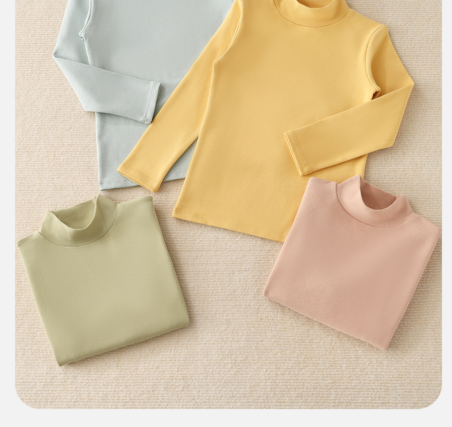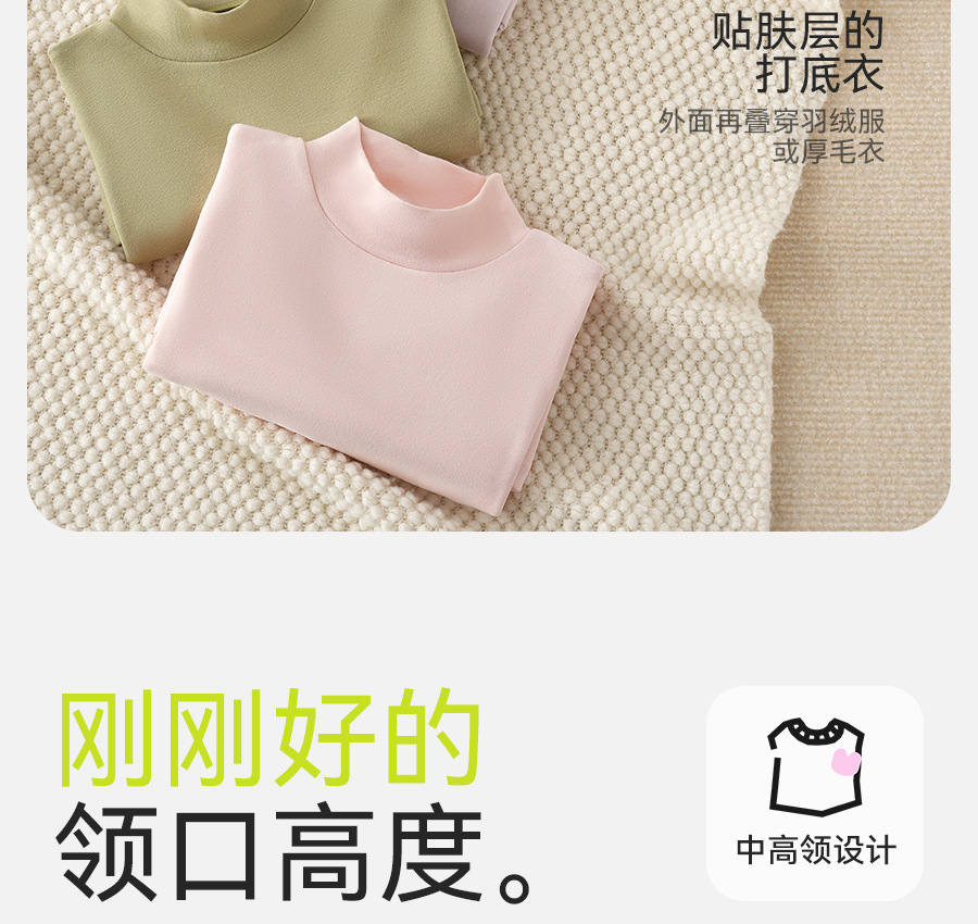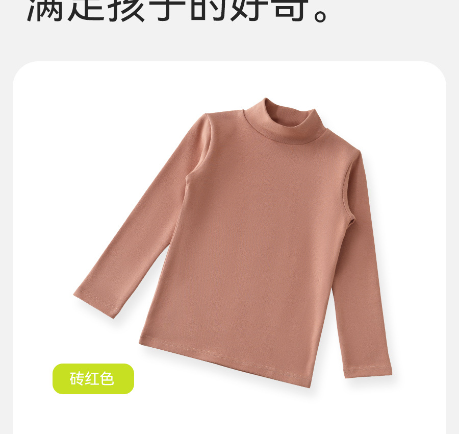 2024秋冬儿童无骨薄绒中领打底衫男女童纯色上衣宝宝弹力半高领20.5RMB立即购买>