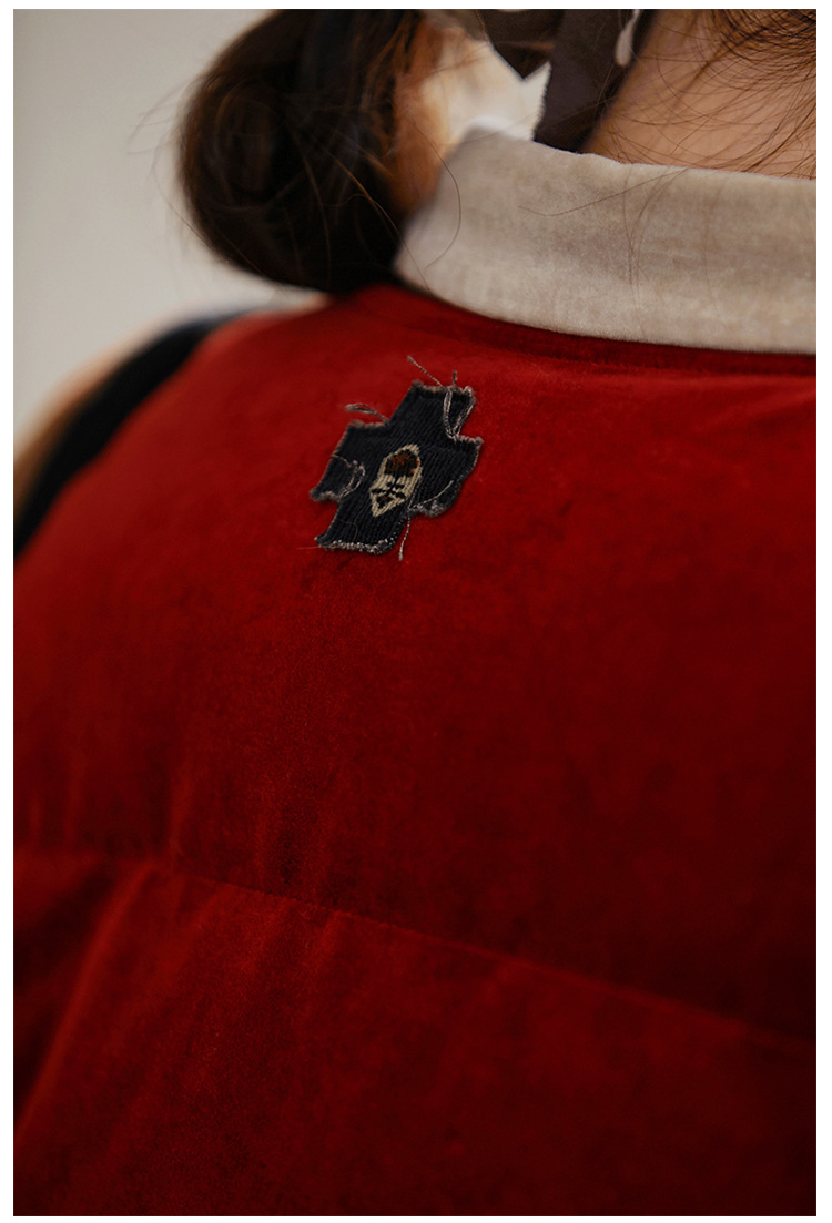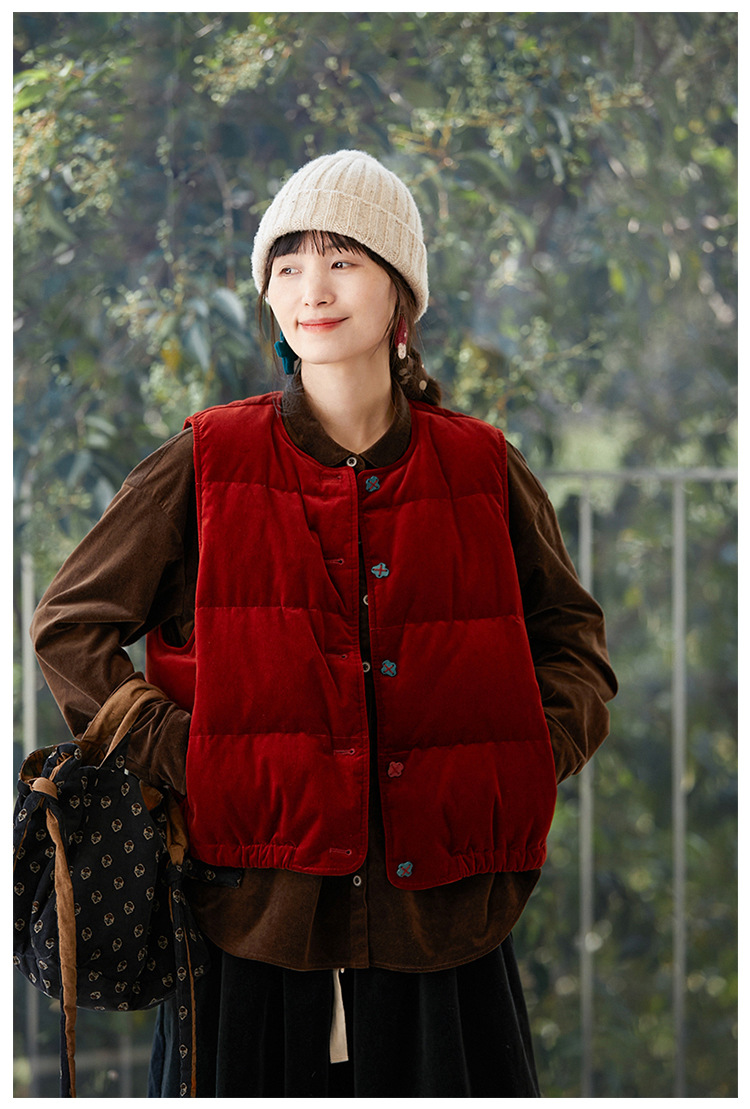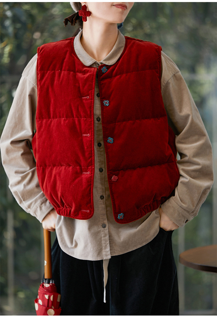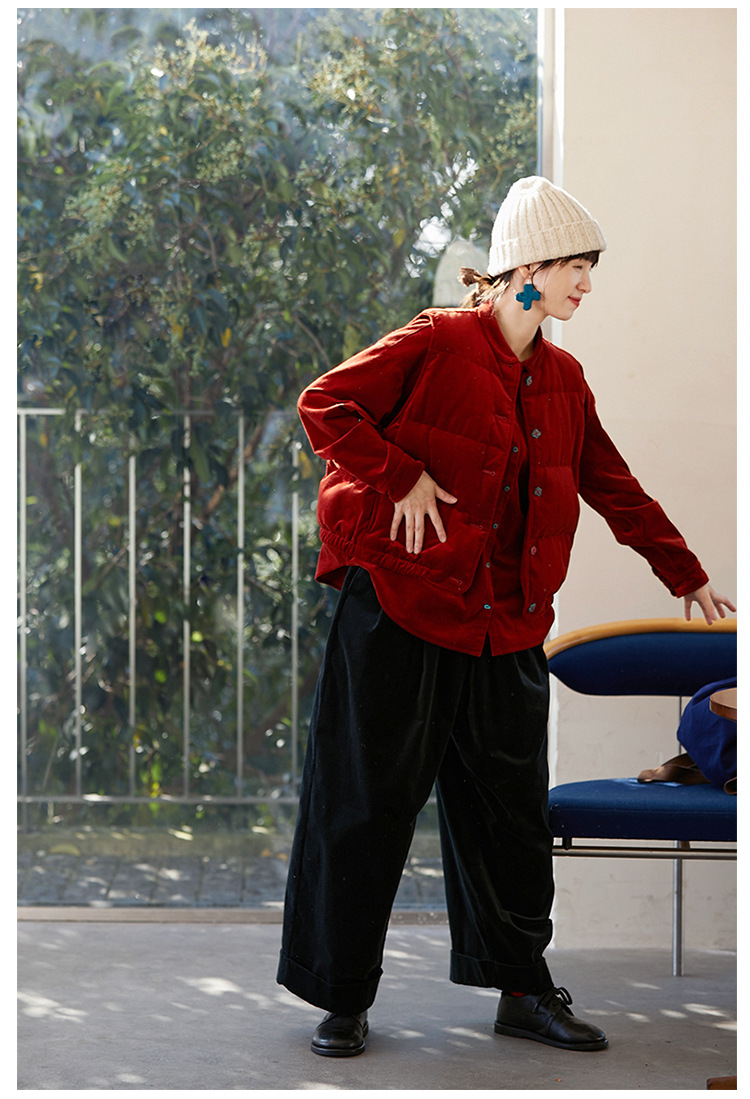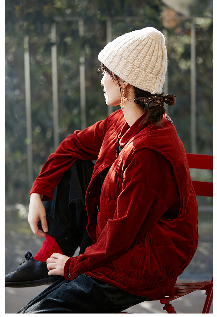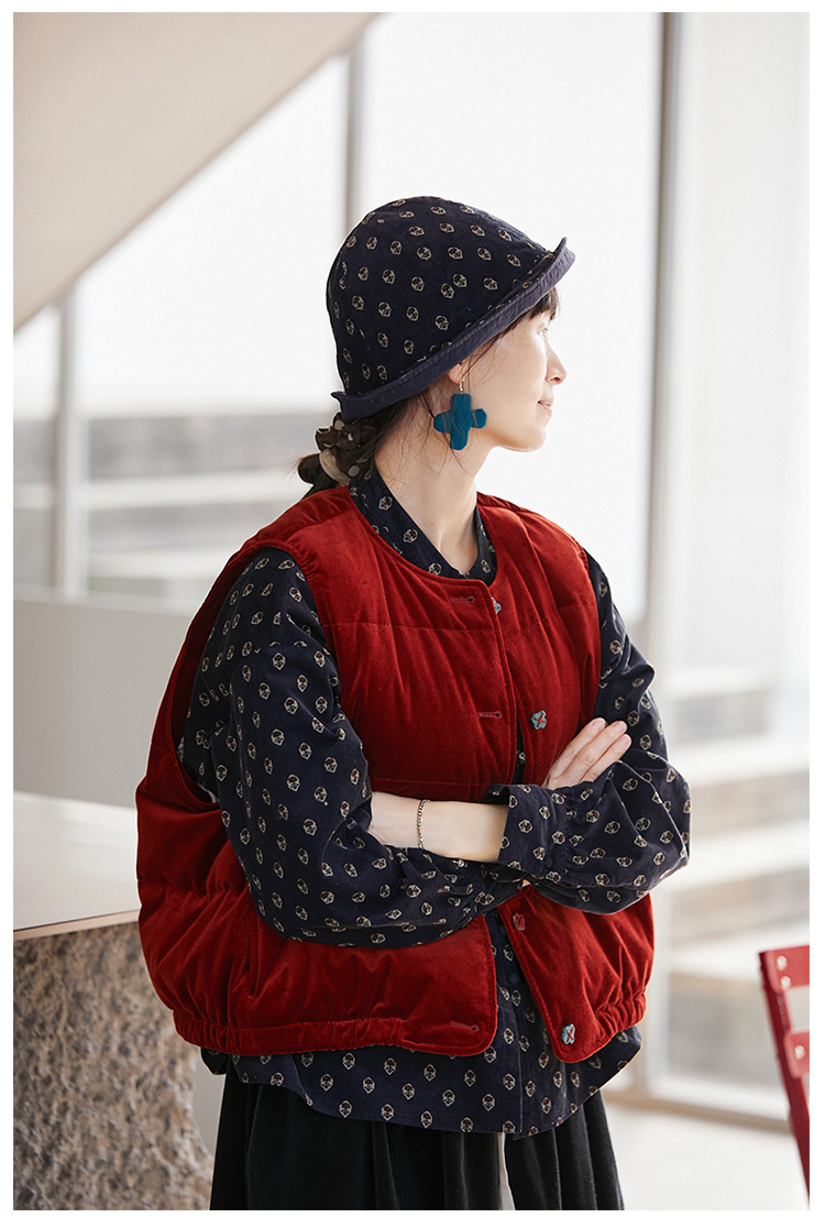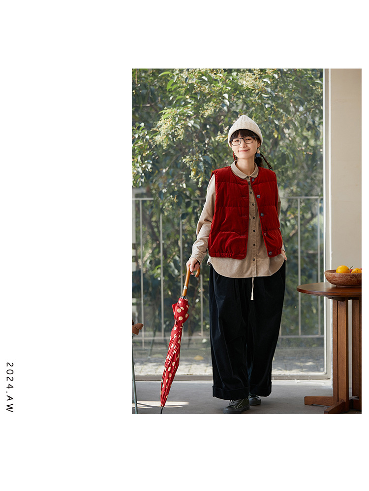 壹旧原著【杂想】冬款丝绒红平绒棉宽松保暖亲肤羽绒女马甲9292B