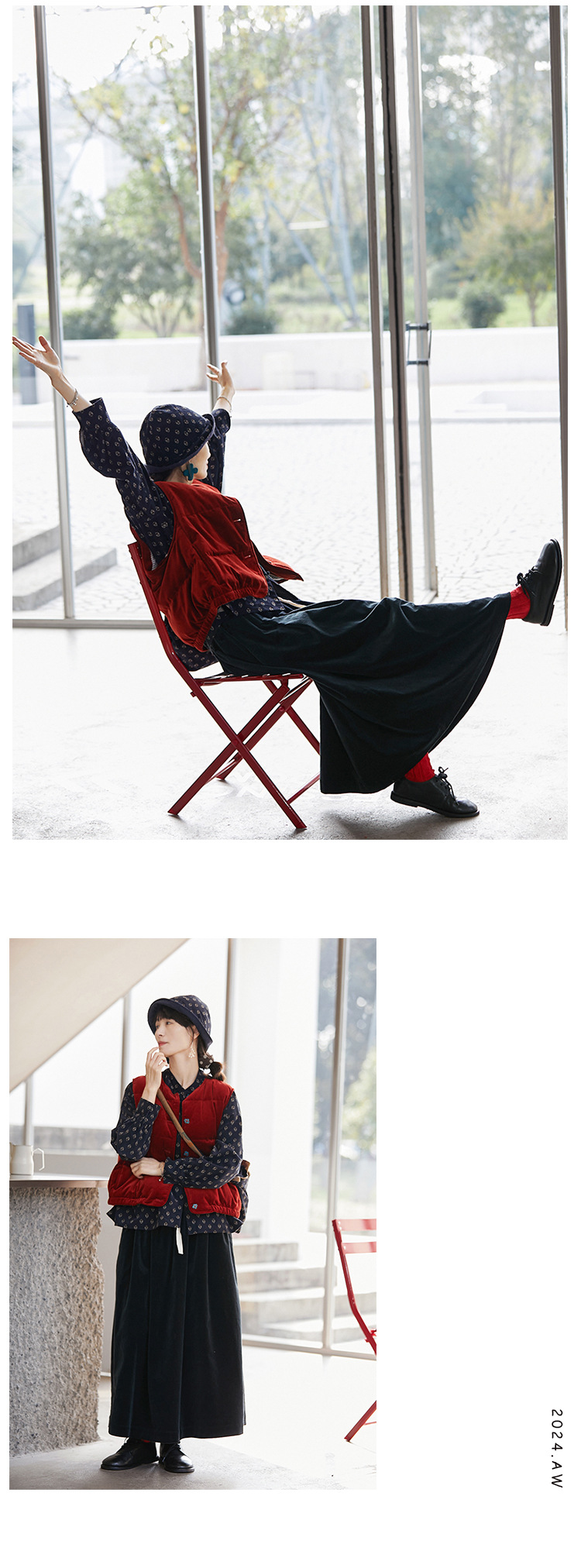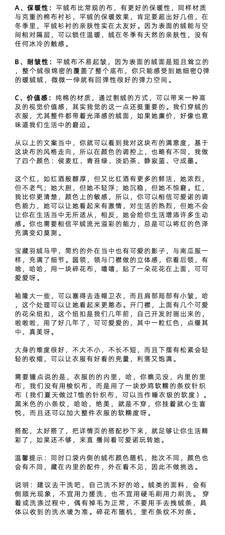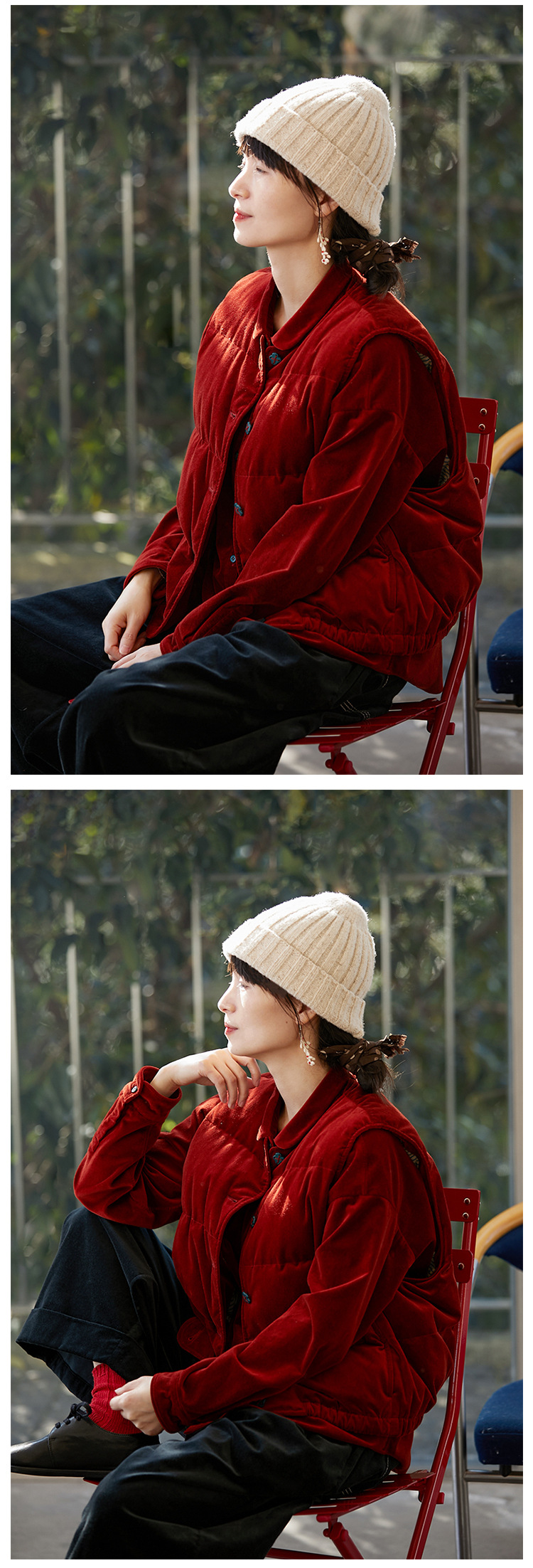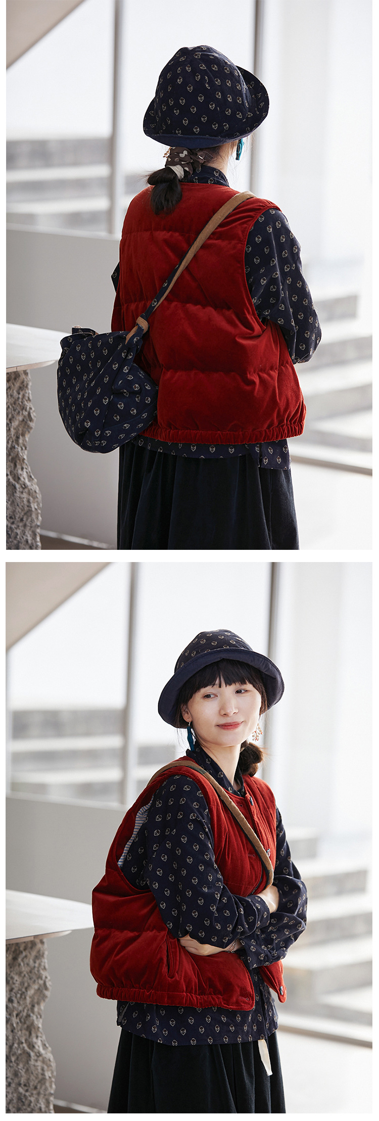壹旧原著【杂想】冬款丝绒红平绒棉宽松保暖亲肤羽绒女马甲9292B