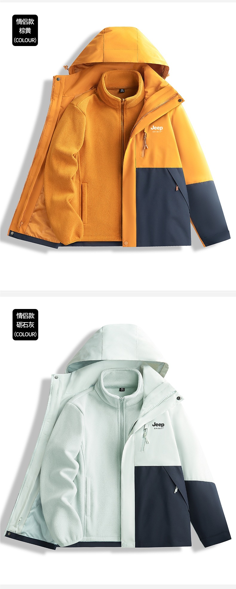 • 남녀 동일 스타일 - 브라운과 옐로우 [재킷+폴라 플리스 안감+다운 안감] 3종세트