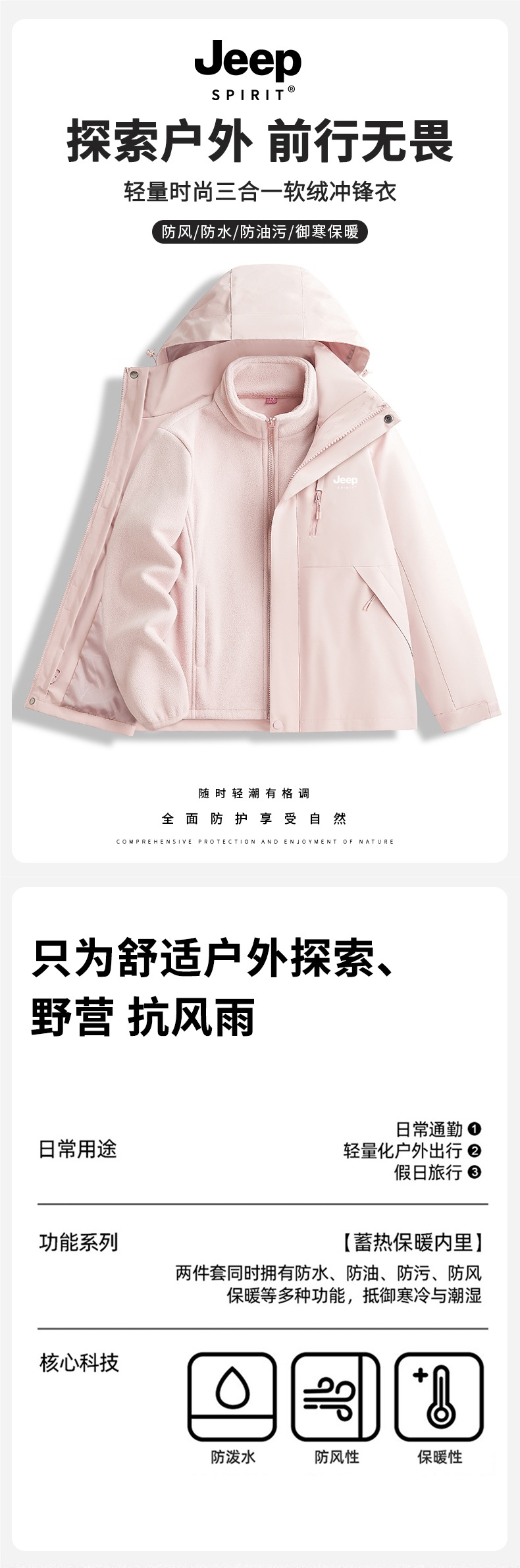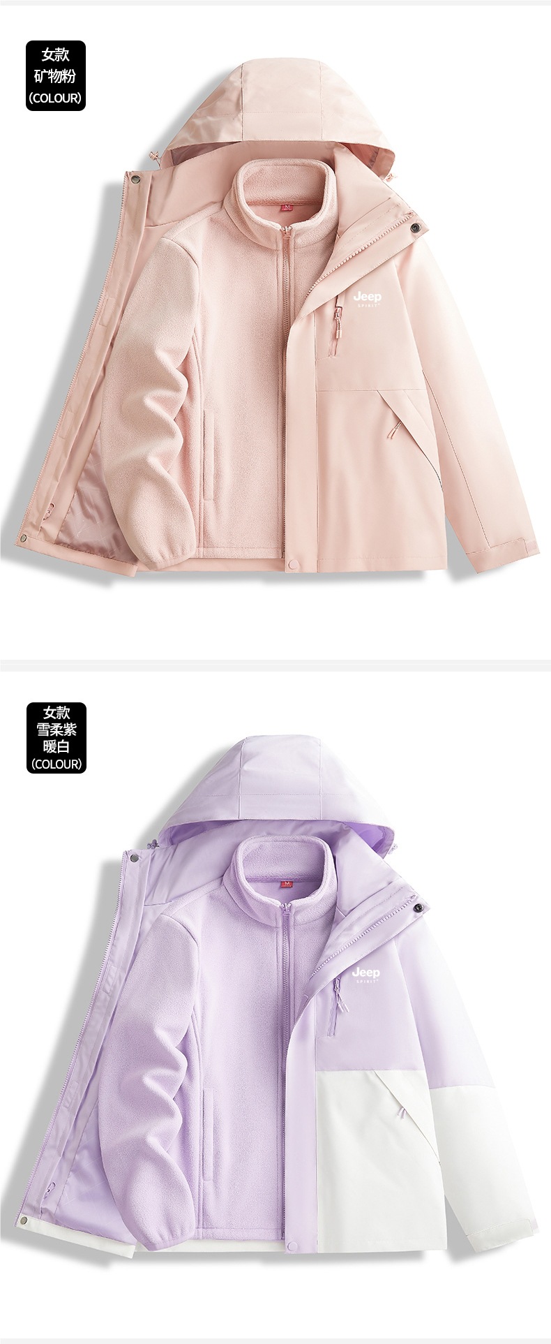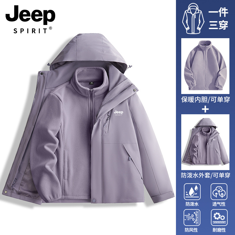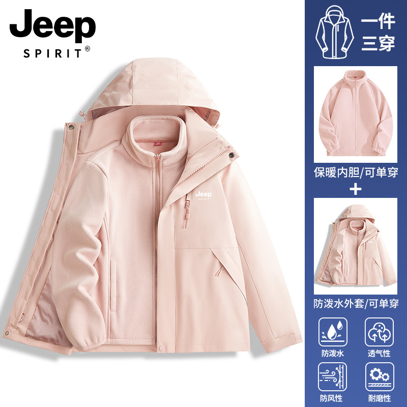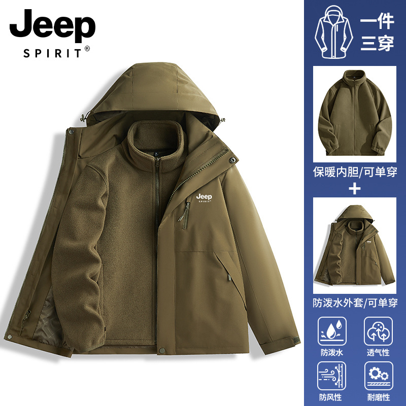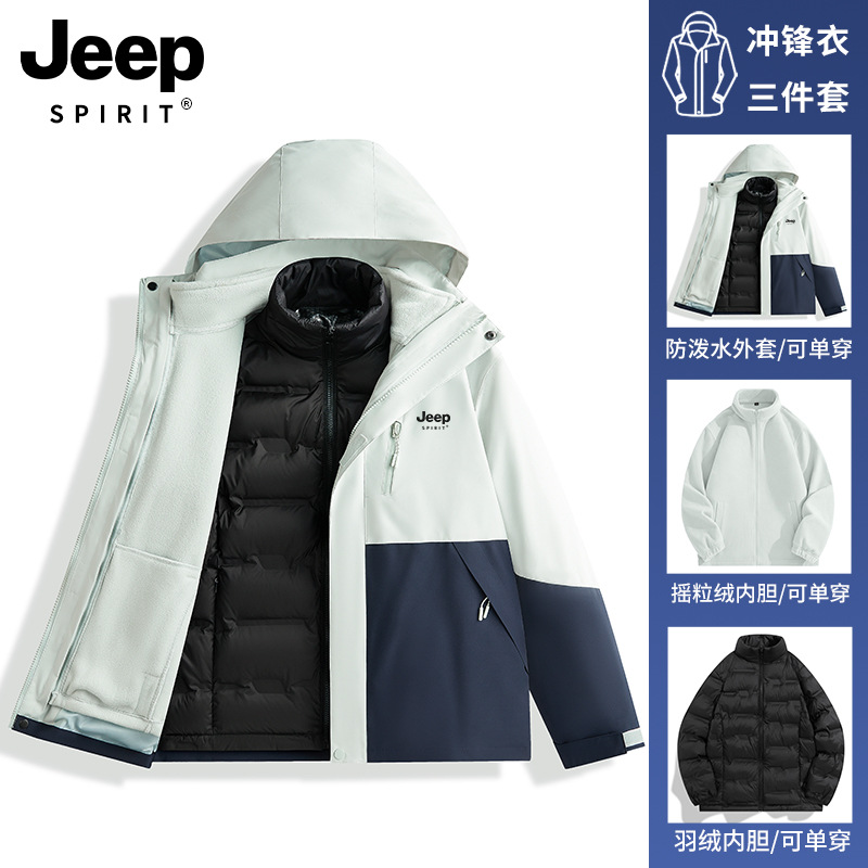 JEEP SPIRIT 폭행 의류 면화 패딩 재킷 여성의 겨울 2024 새로운 3 대 1 기모 면화 패딩 스키 두꺼운 코트