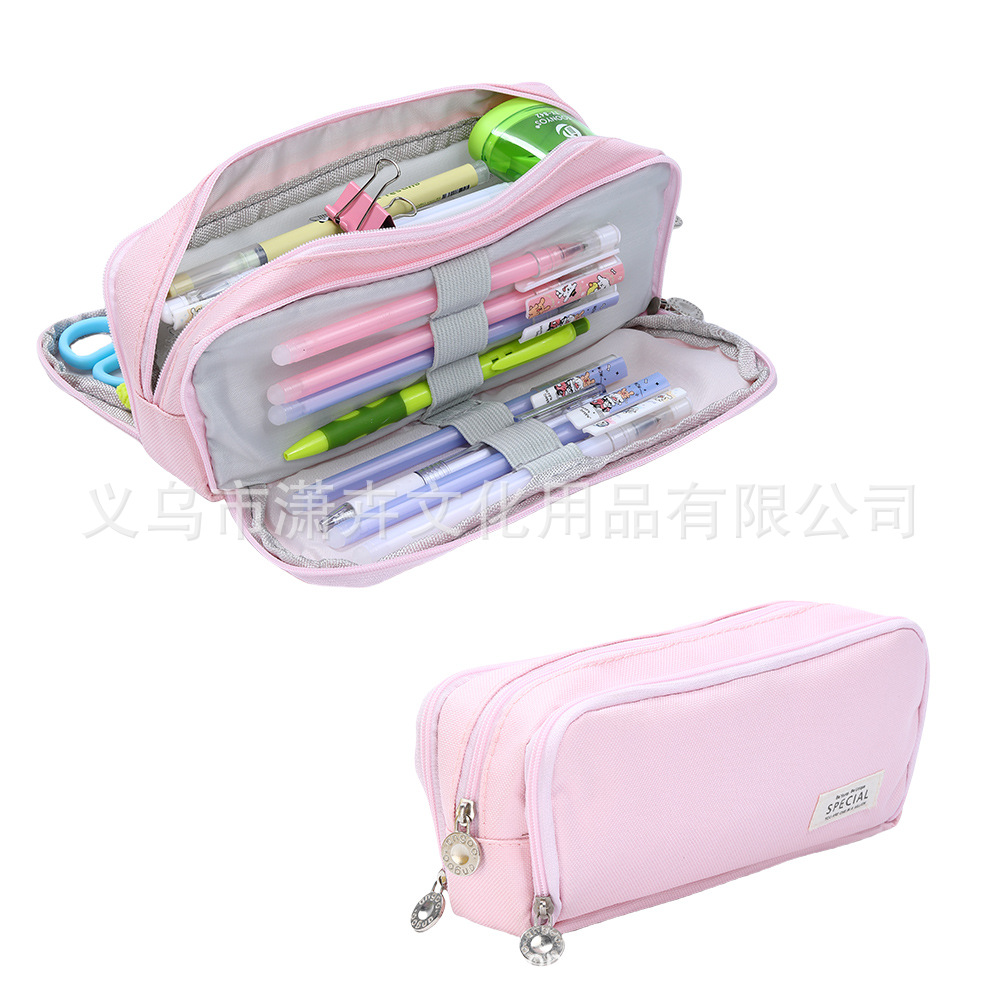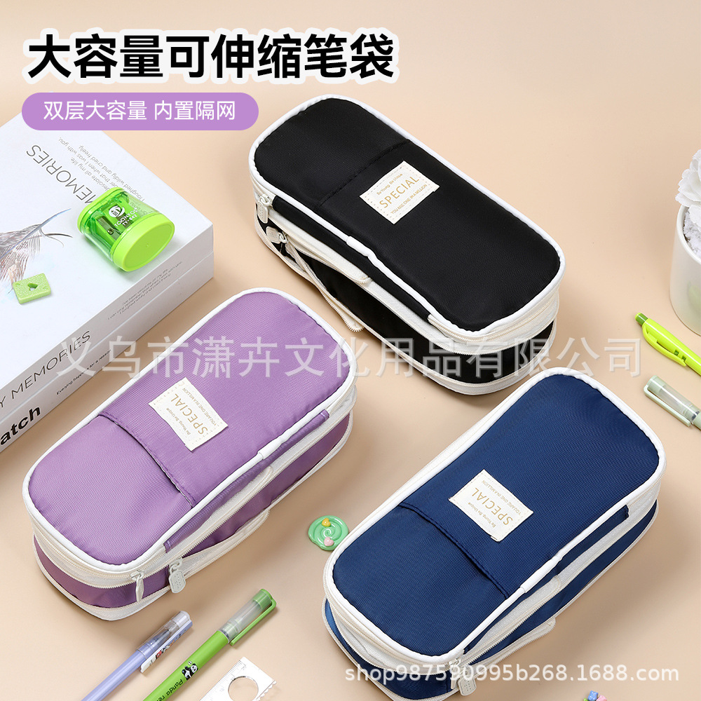 마카롱 접이식 필통, 이중층 대용량 단색 배색 문구 가방, 심플 필통, 아마존 해외 직구 가능