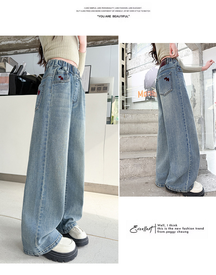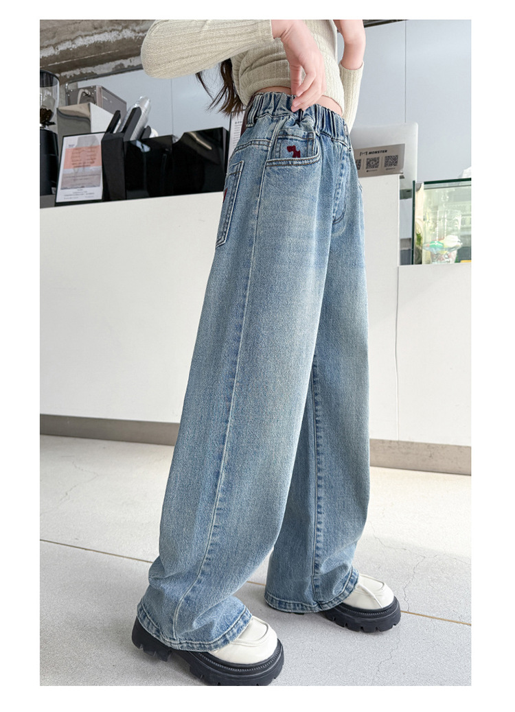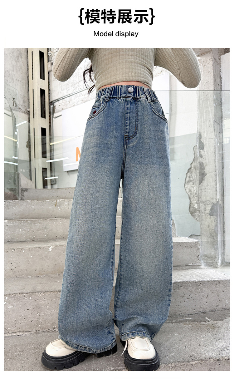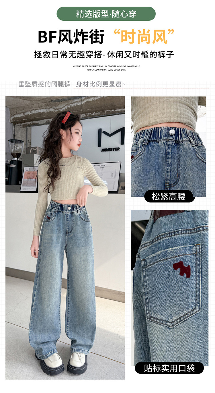 소녀 라이트 컬러 청바지 봄과 가을 2025 새로운 큰 어린이 봄 캐주얼 와이드 레그 바지 어린이 스트레이트 다리 바지 대외 무역스토어 가기