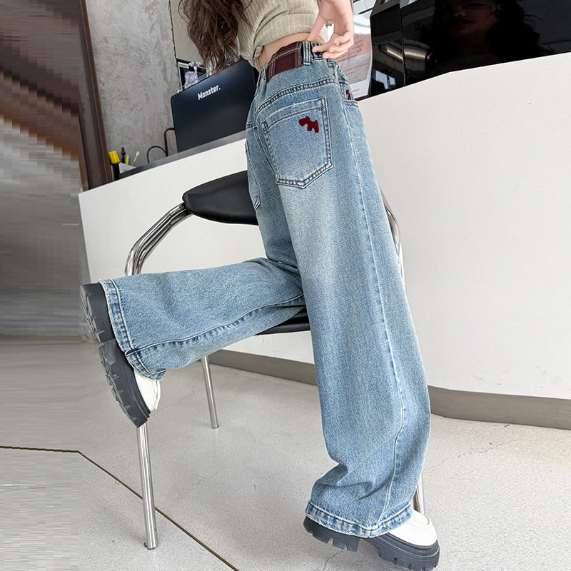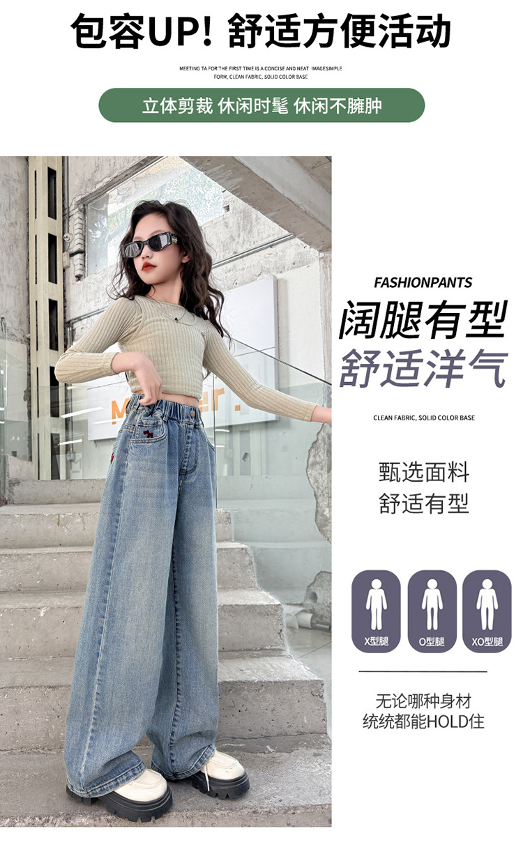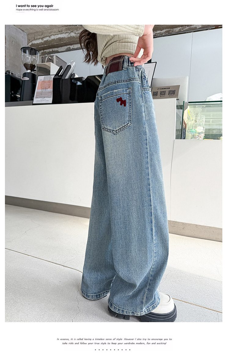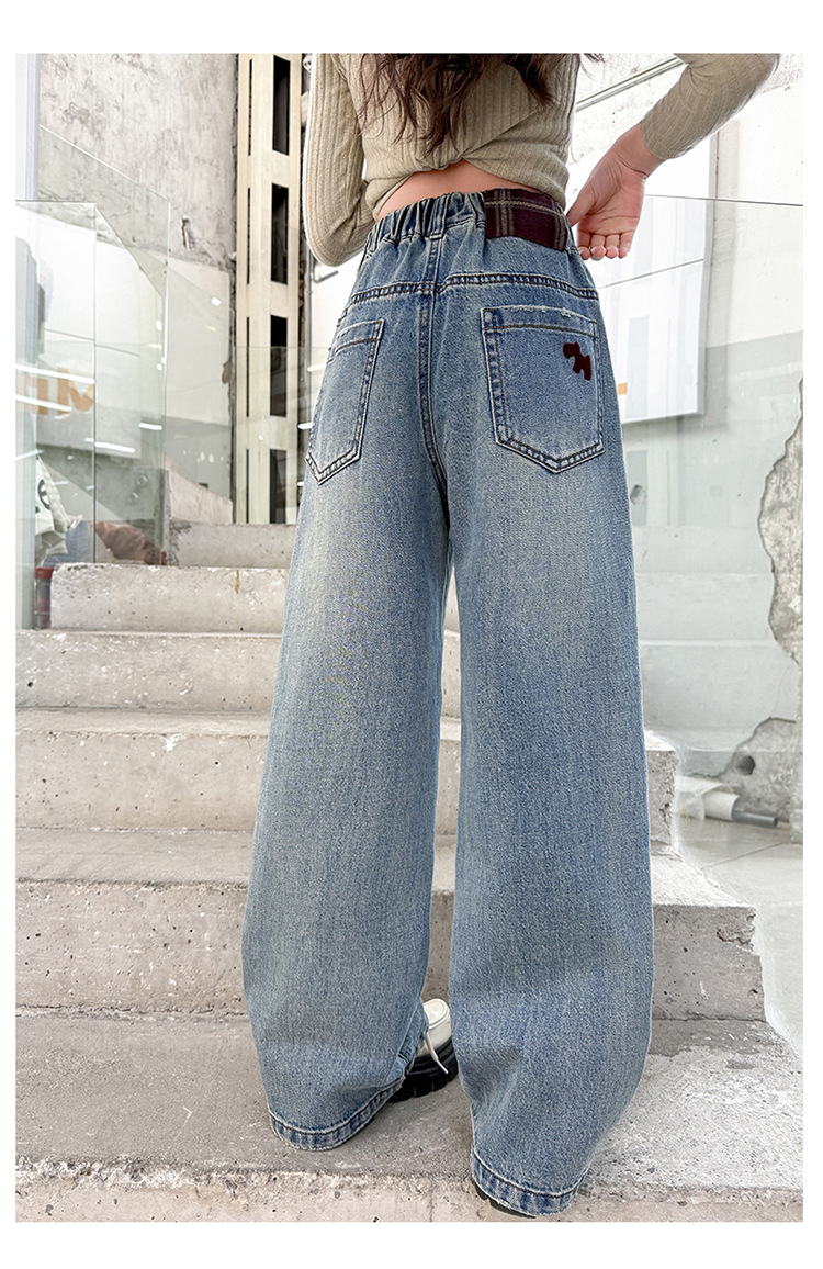 소녀 라이트 컬러 청바지 봄과 가을 2025 새로운 큰 어린이 봄 캐주얼 와이드 레그 바지 어린이 스트레이트 다리 바지 대외 무역스토어 가기