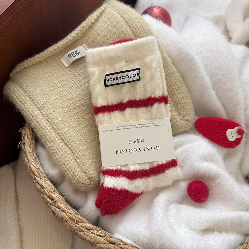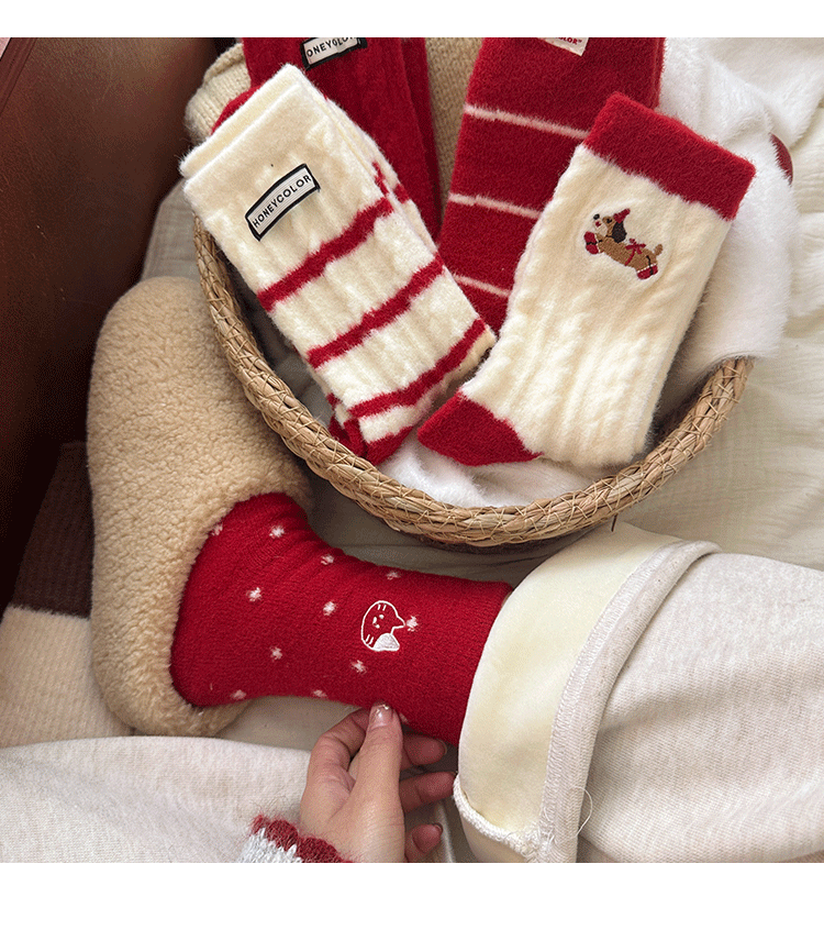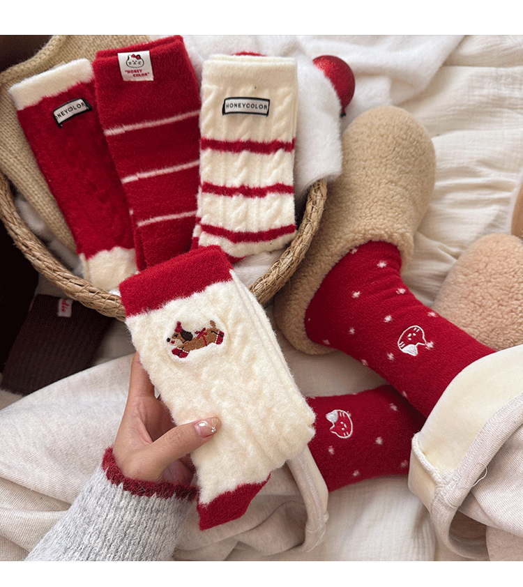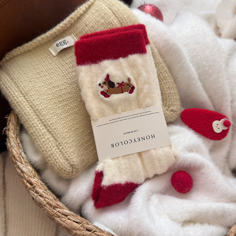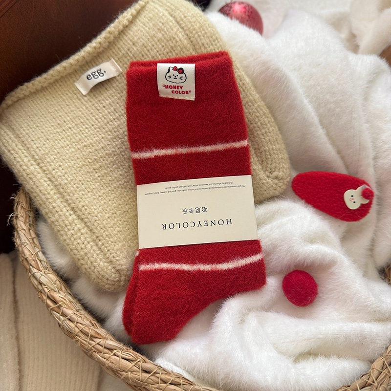 Waxy Jiji Red "호주 벨벳 양말 어린이 미드 튜브 양말 가을과 겨울 두꺼운 자수 고양이 홈 귀여운 수면 양말스토어 가기