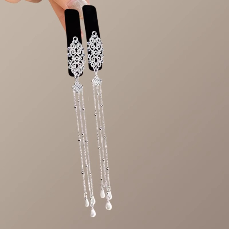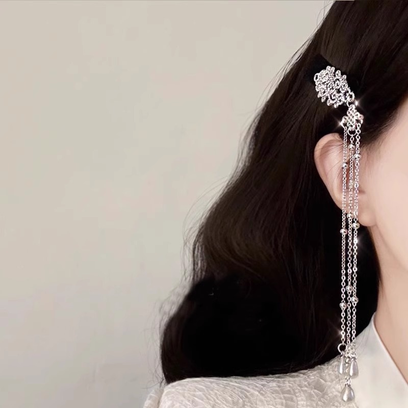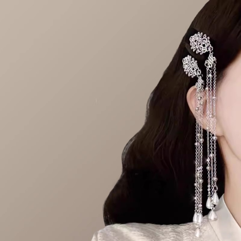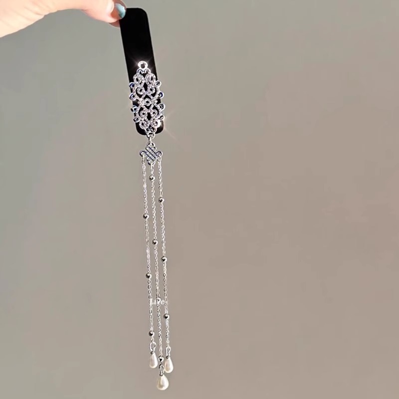 빈티지 민족 스타일 실버 다이아몬드 중국 매듭 술 머리핀 여성의 2024 새로운 하이 엔드 BB 클립 우아한 헤어 액세서리스토어 가기