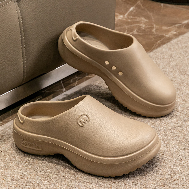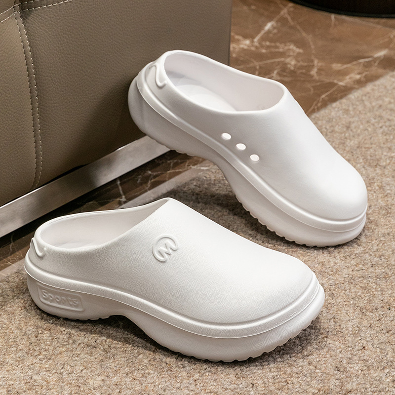 Baotou 슬리퍼 여성용 두꺼운 밑창 Ins 경량 미끄럼 방지 높이 올리기 솔리드 컬러 단순 플랫폼 하프 드래그 홀 신발 남성 크로스 보더 신발