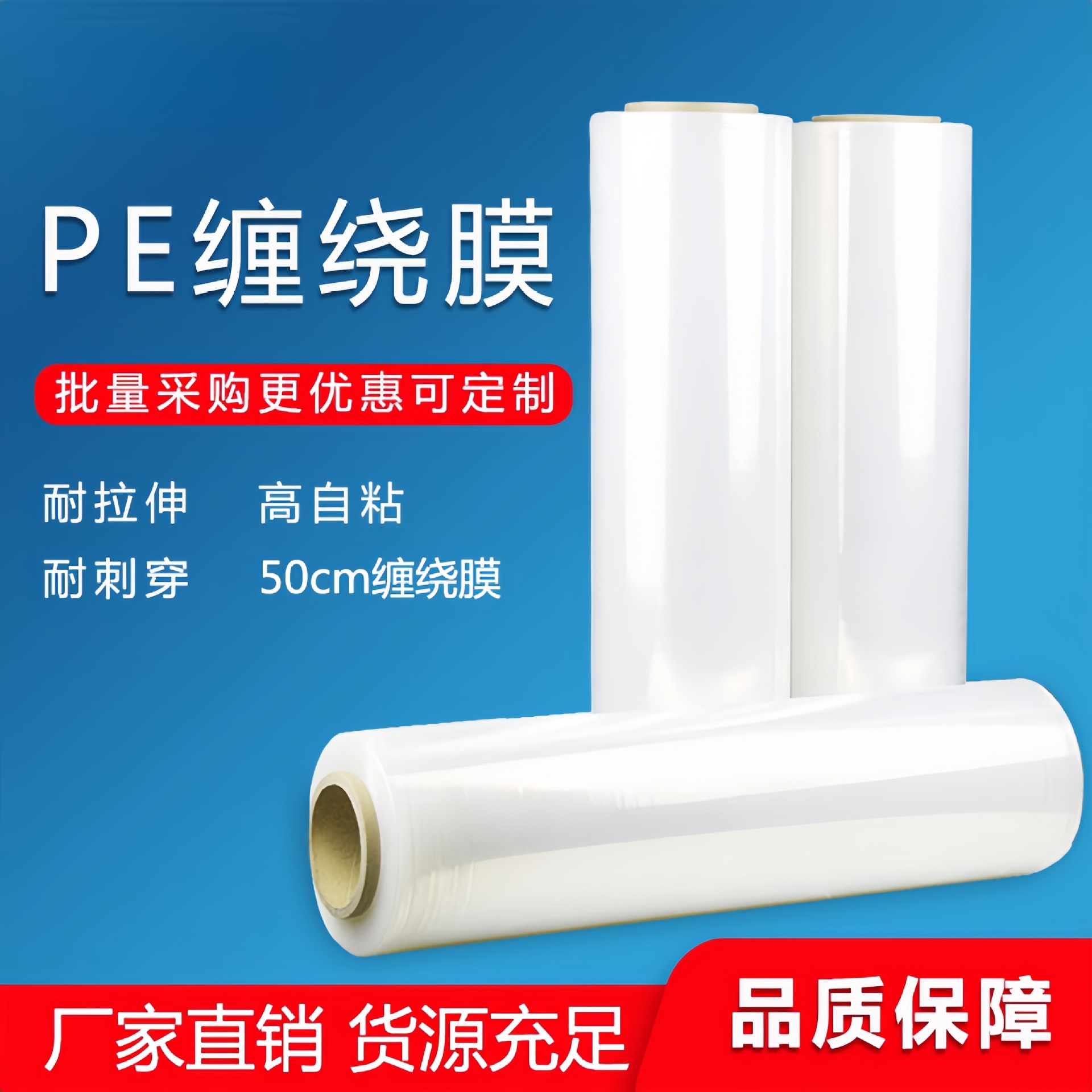 PE 와인딩 필름 플라스틱 포장 필름 포장 필름 도매 스트레치 필름 대형 롤 산업용 트레이 필름 폭 50cm 도매