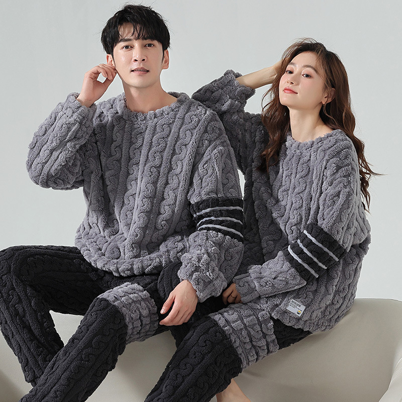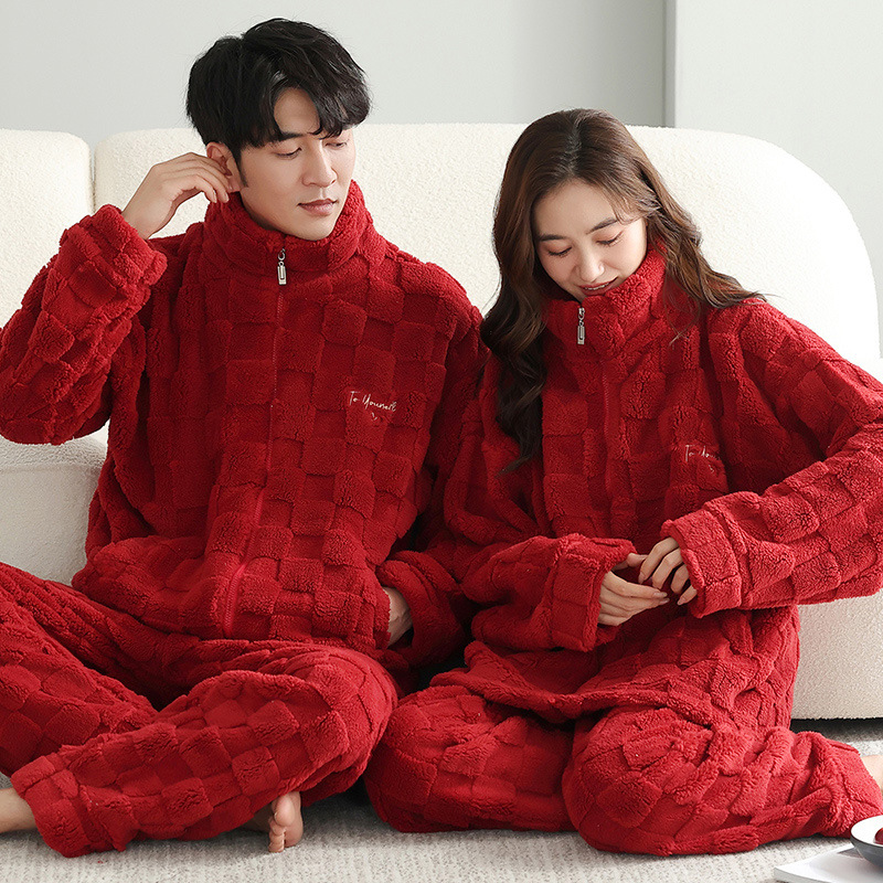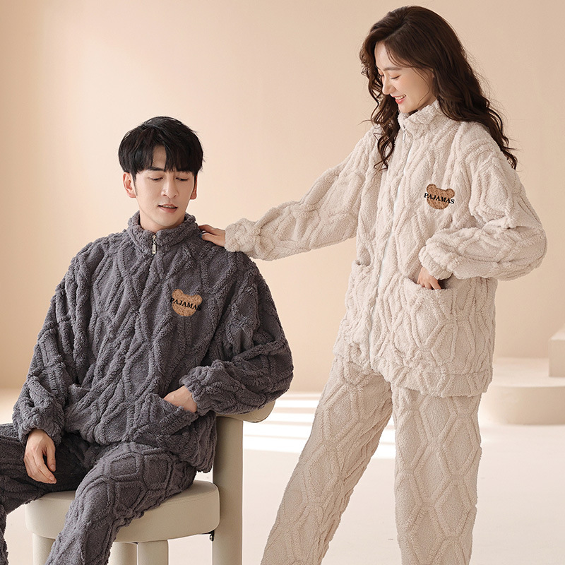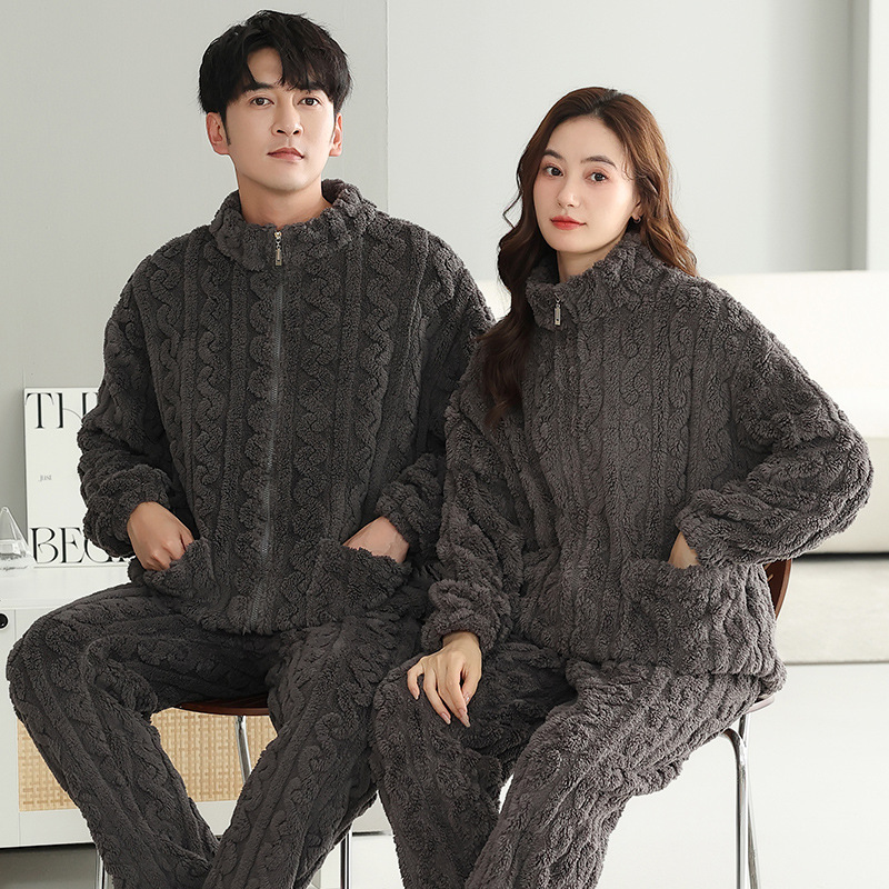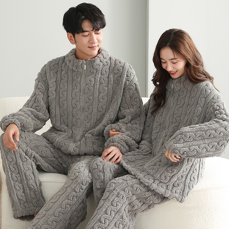 산호 양털 잠옷 커플 기모 가을/겨울 투피스 지퍼 따뜻한 플란넬 청소년 의상 홈 옷스토어 가기