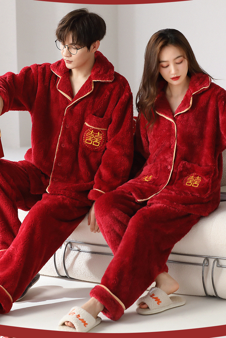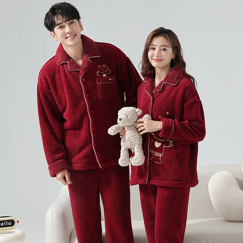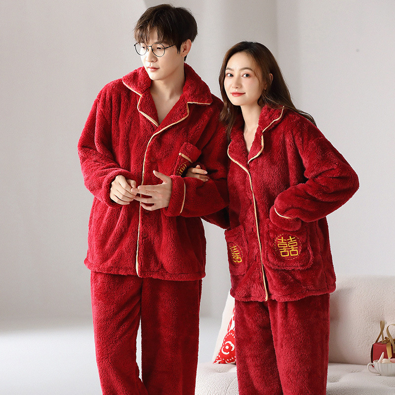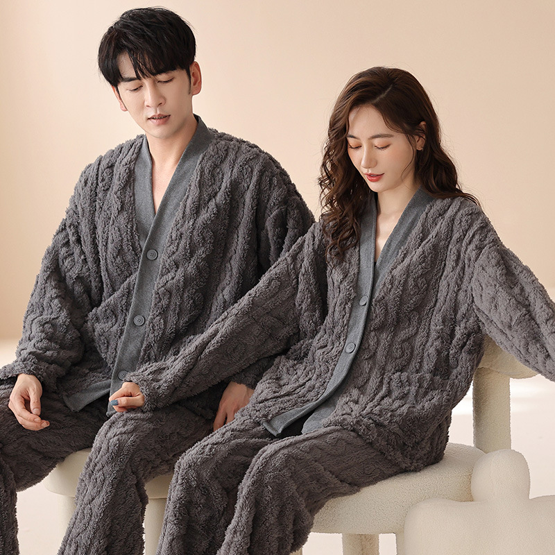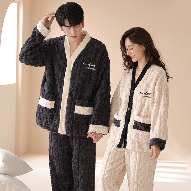 산호 양털 잠옷 커플 기모 가을/겨울 투피스 지퍼 따뜻한 플란넬 청소년 의상 홈 옷스토어 가기