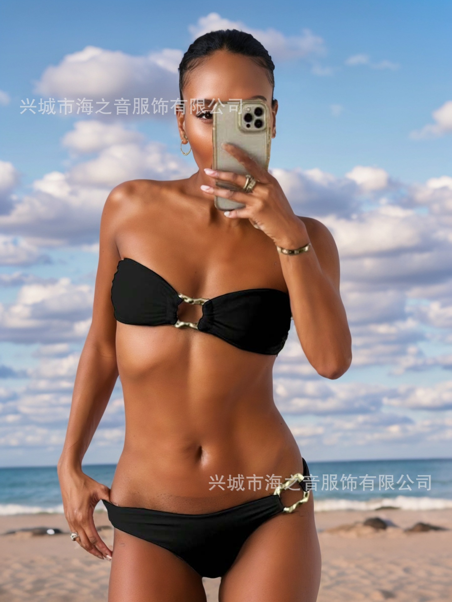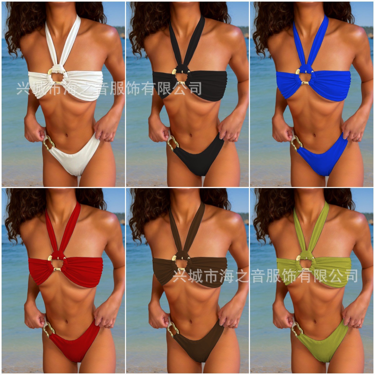 2025 새로운 섹시한 스플릿 비키니 세트 유럽과 미국의 레이스 업 로우 허리 크로스 보더 아마존 비키니 수영복