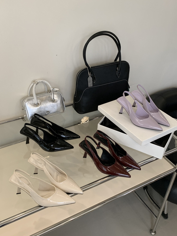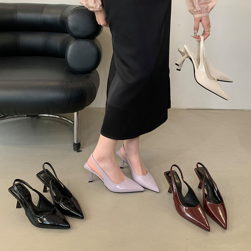 2025 봄 새로운 패션 하이힐 여성의 뾰족한 스틸레토 힐 샌들 통근 한 단어 빈 힐 싱글 레이어 신발스토어 가기