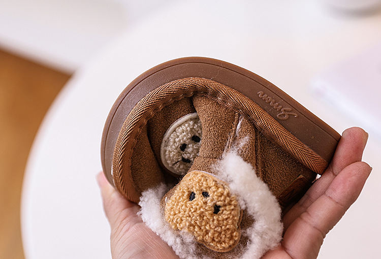 소녀 스노우 부츠 2024 겨울 새로운 만화 곰 기모 두꺼운 아이들의 큰면 신발 따뜻한 소년 부츠스토어 가기