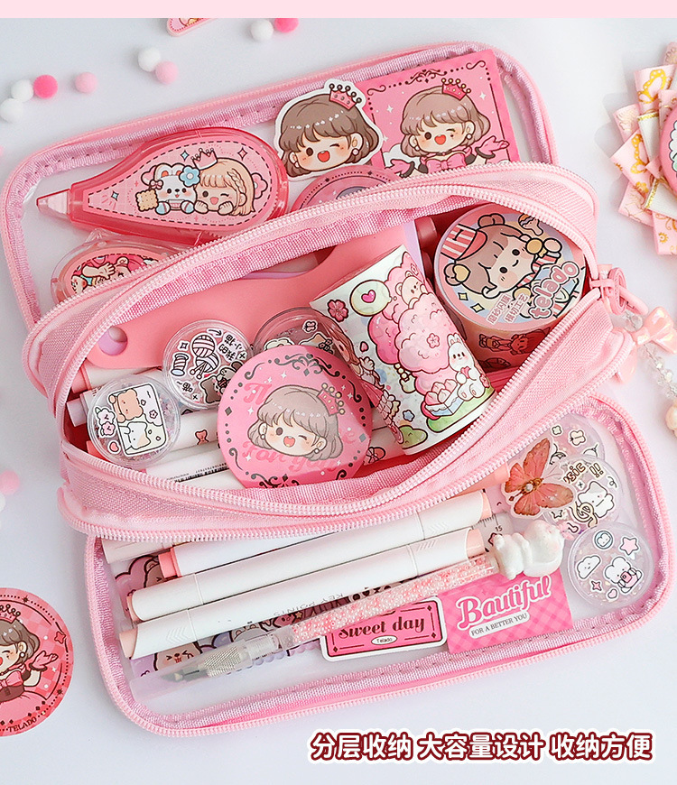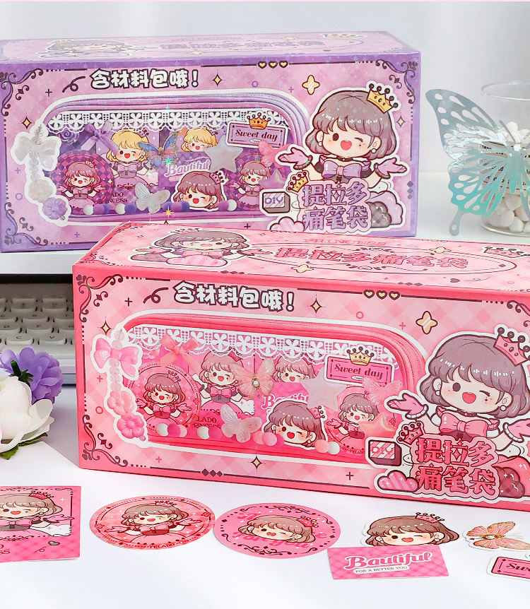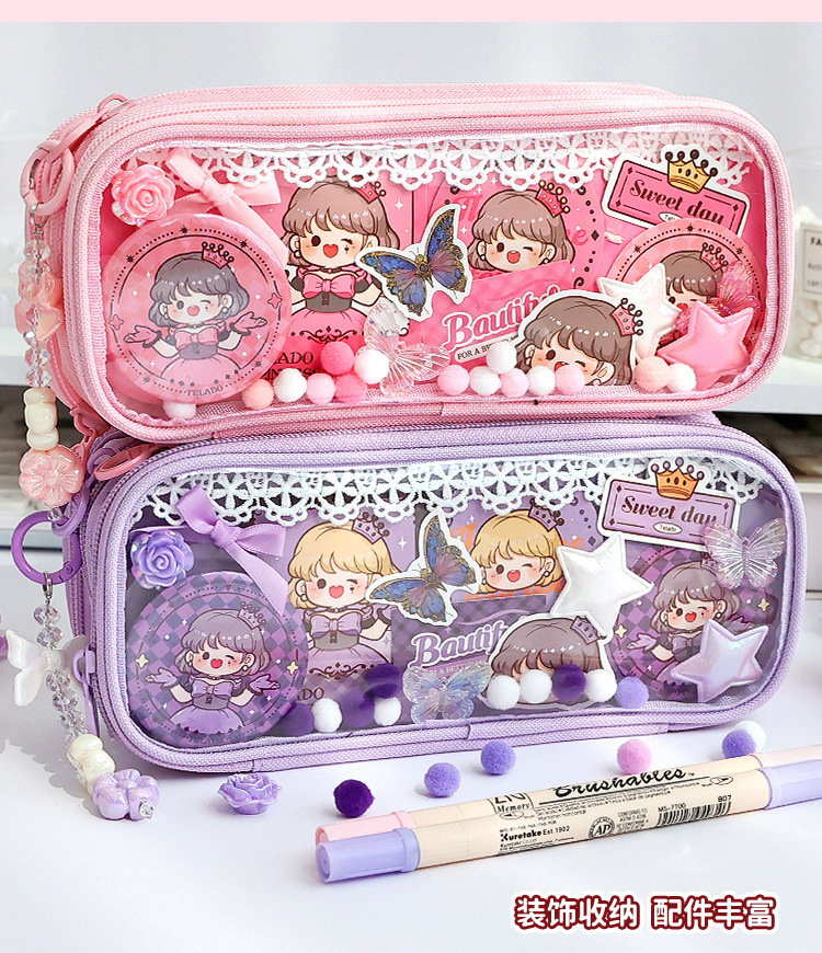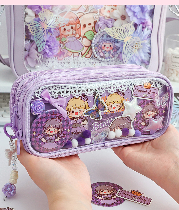 티라 도라 통증 연필 가방 투명 DIY 소재 연필 가방 통증 가방 문구 가방 연필 상자 장식 학생 문구스토어 가기