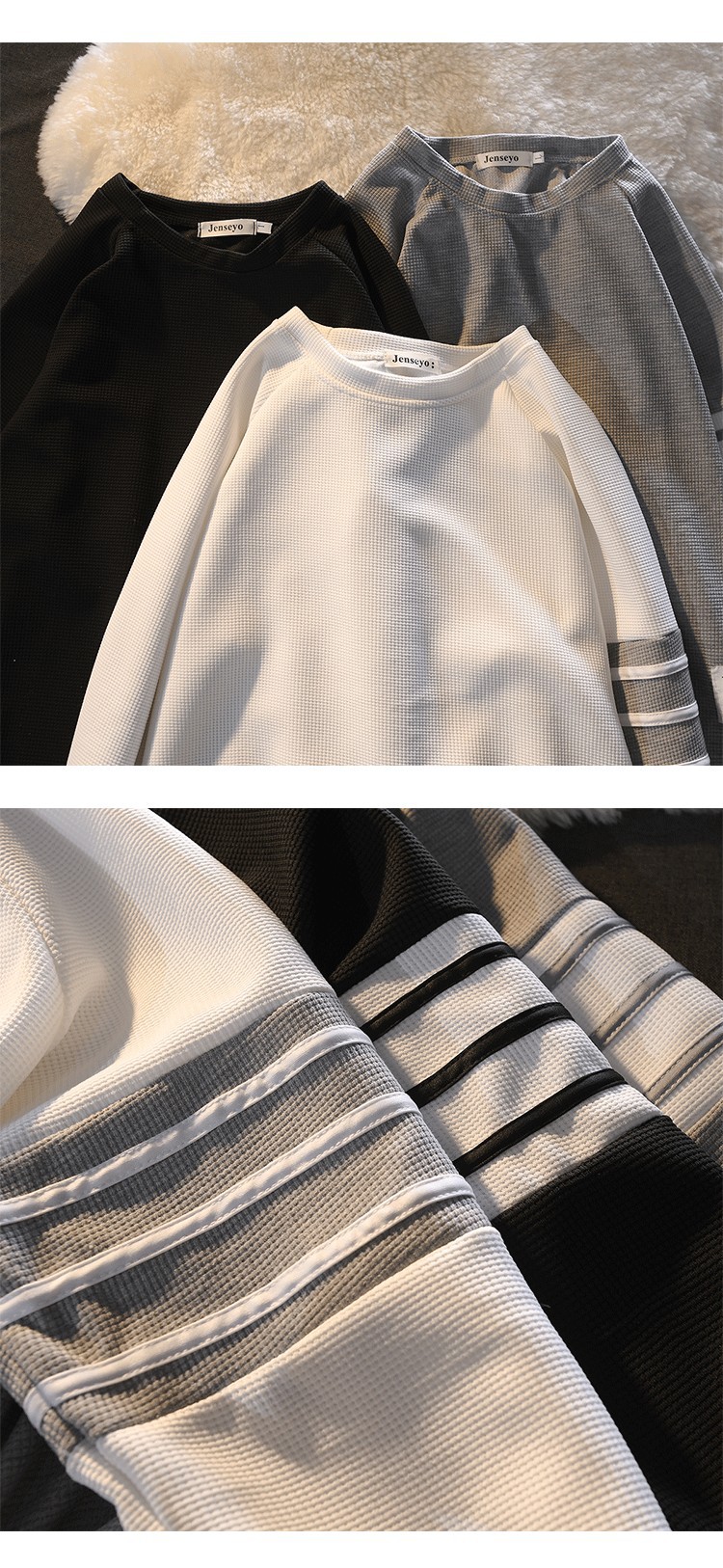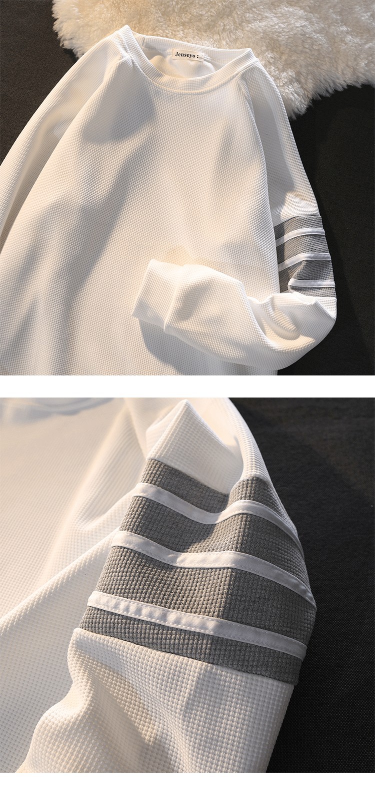 와플 스웨터 남자의 봄과 가을 얇은 줄무늬 4 바 캐주얼 풀오버 탑 유행 루즈 남성베이스 셔츠스토어 가기