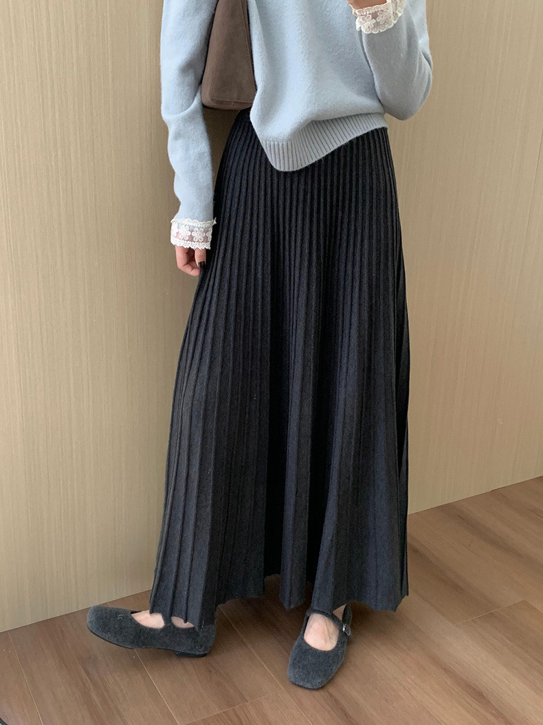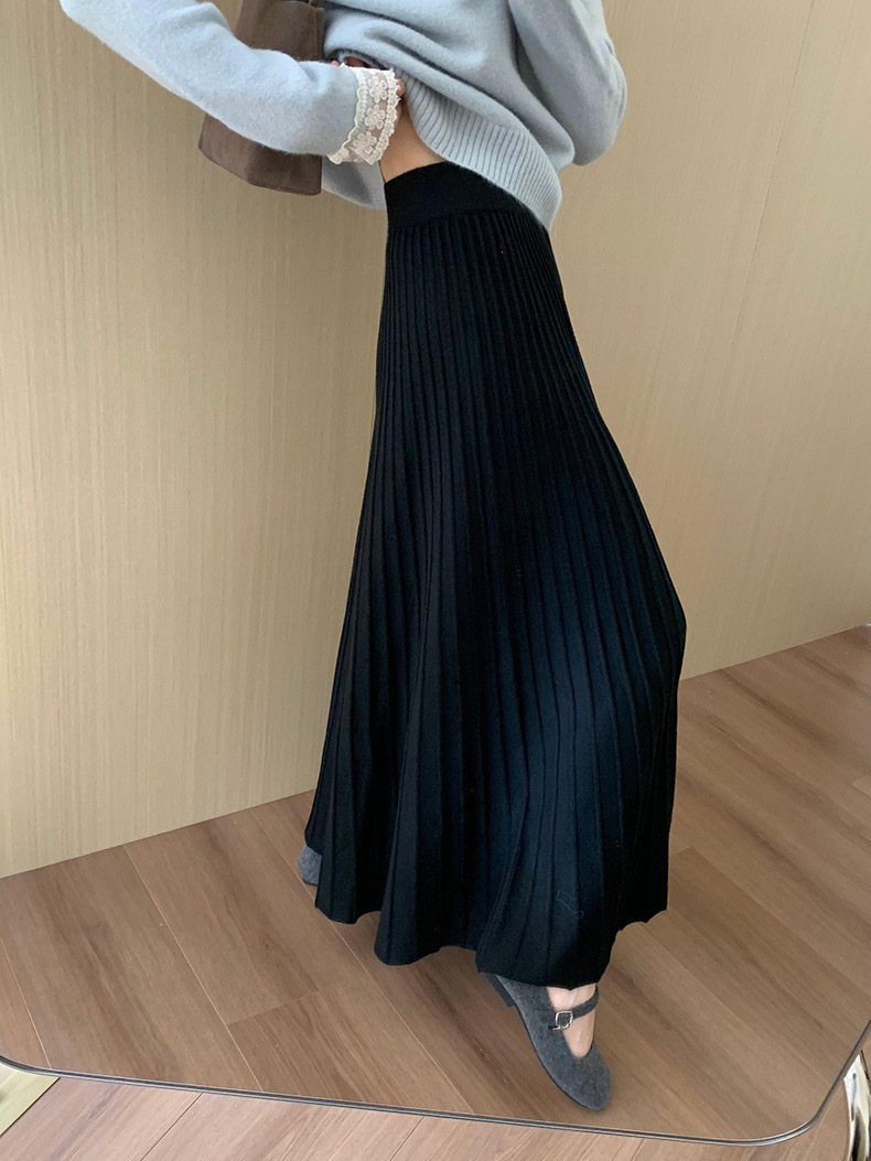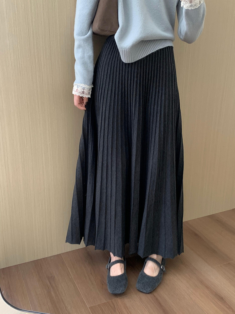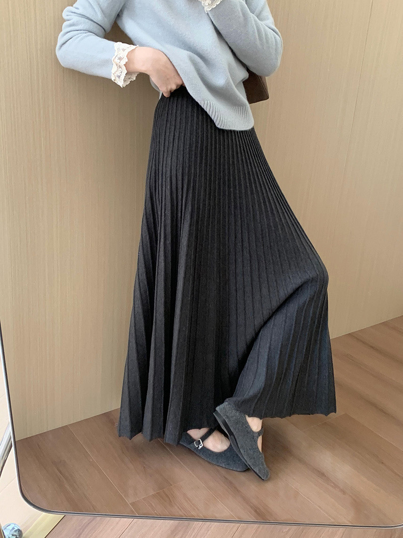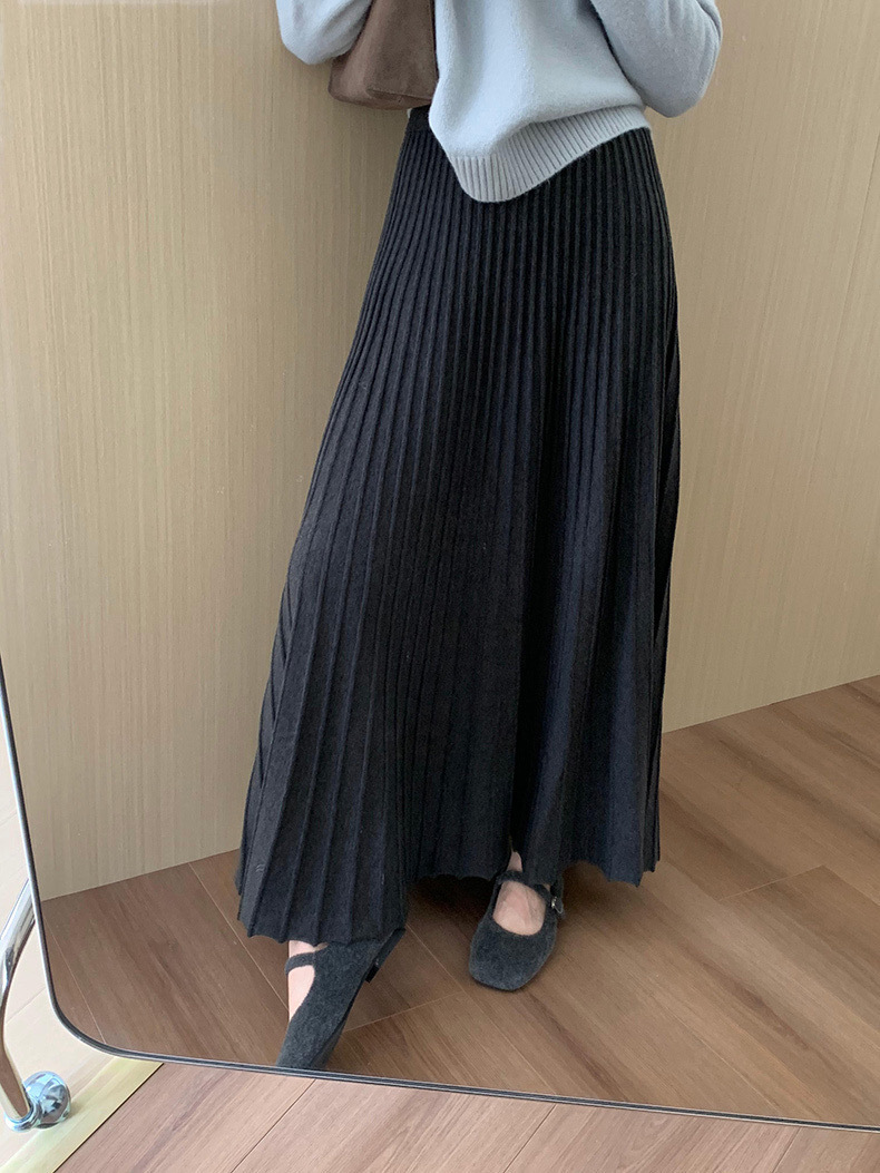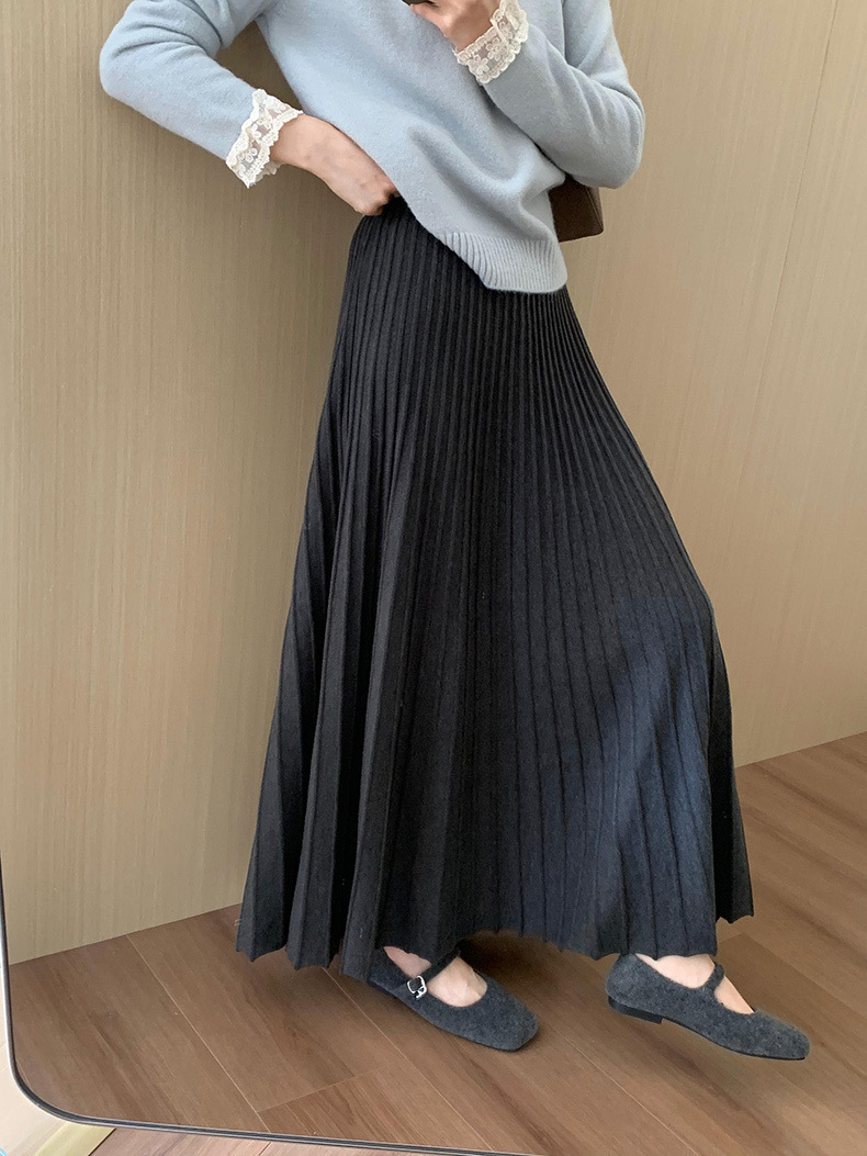 높은 허리 슬리밍 캐시미어 두꺼운 주름 치마 2024 겨울 새 한국식 올매치 캐주얼 여성 스타일 우산 스커트스토어 가기