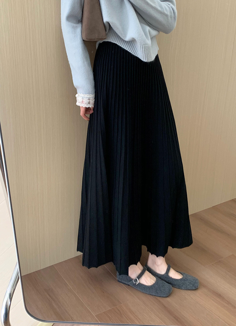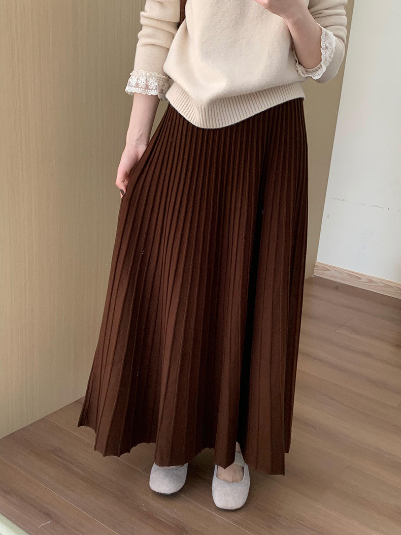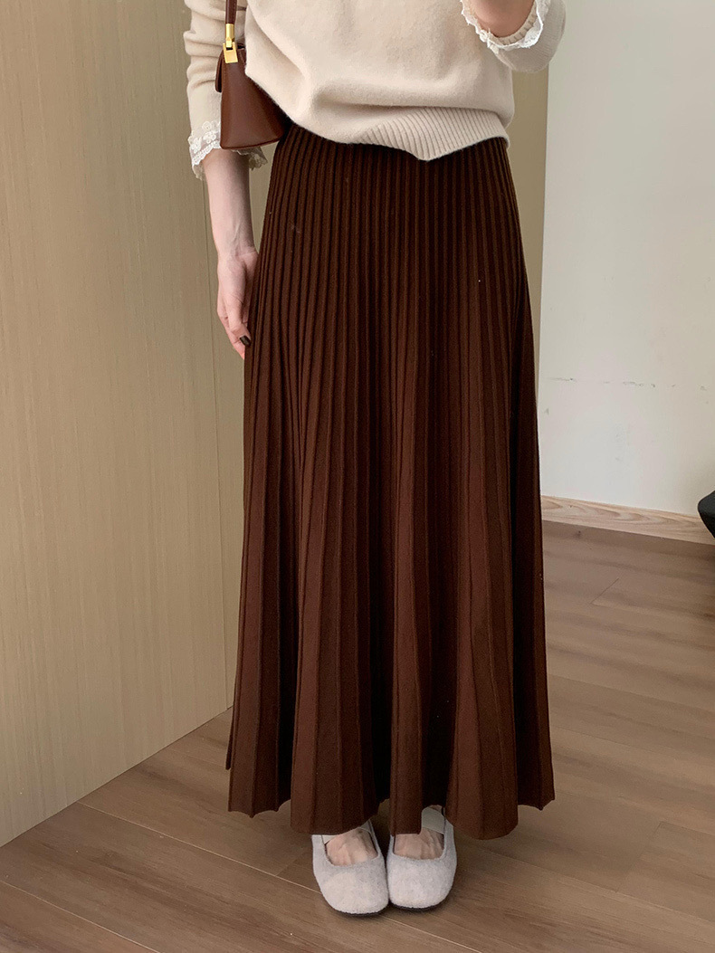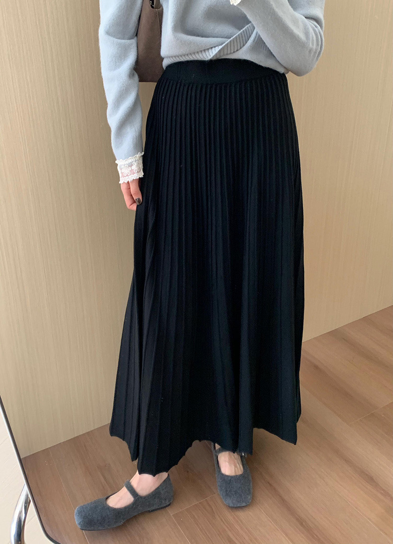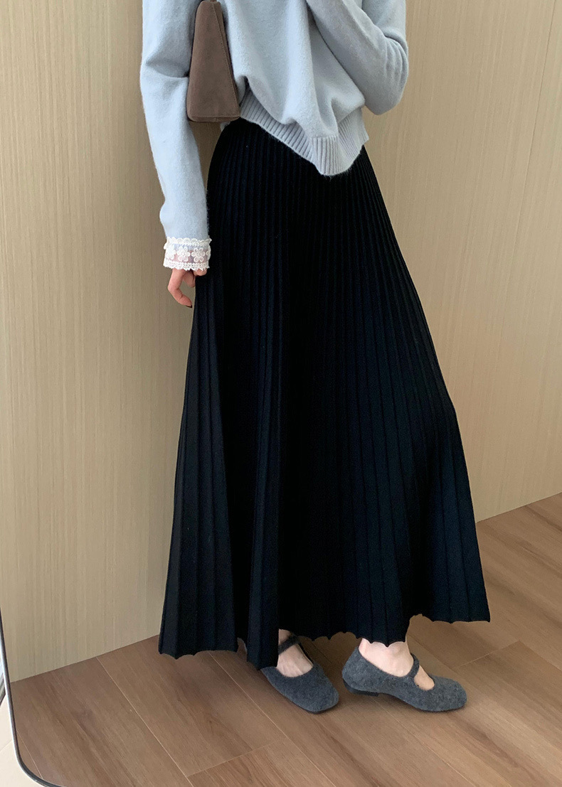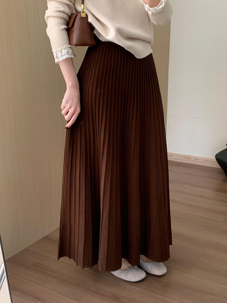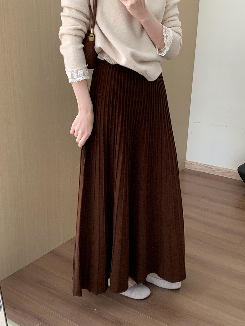 높은 허리 슬리밍 캐시미어 두꺼운 주름 치마 2024 겨울 새 한국식 올매치 캐주얼 여성 스타일 우산 스커트스토어 가기