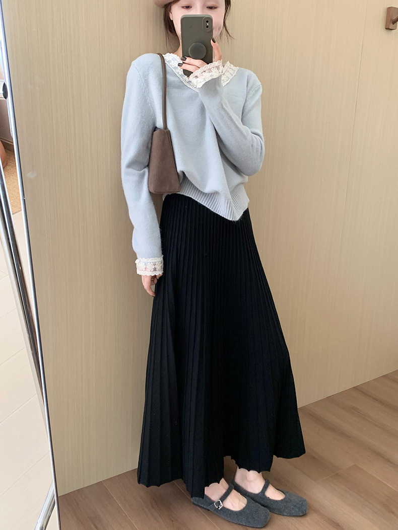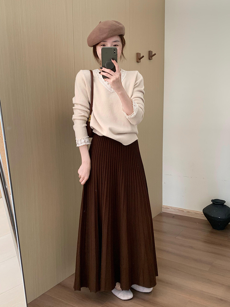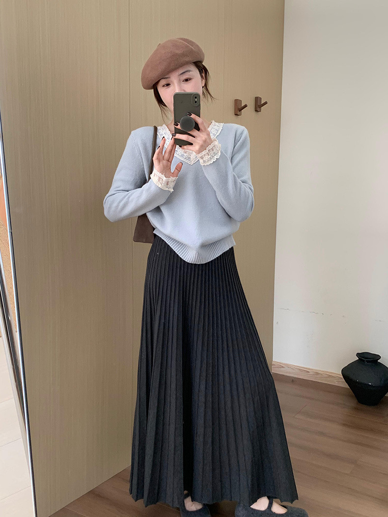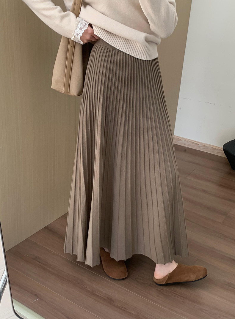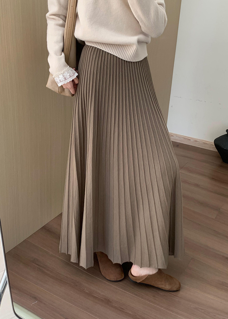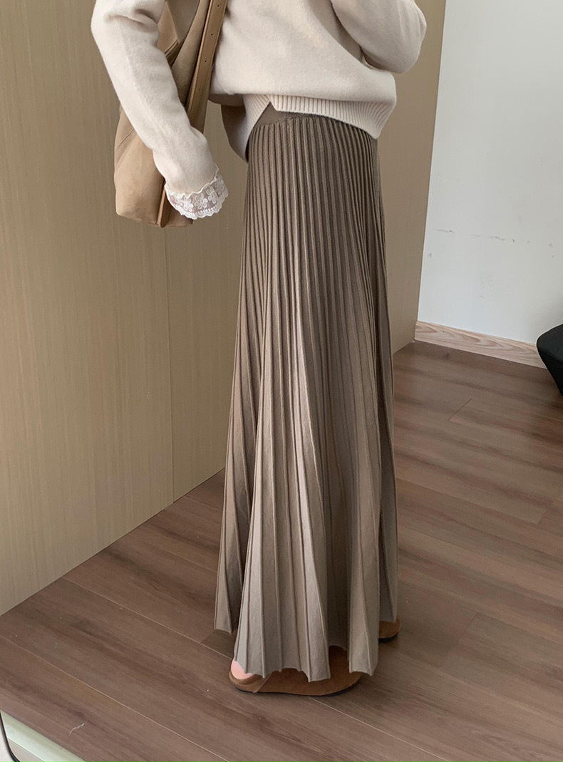 높은 허리 슬리밍 캐시미어 두꺼운 주름 치마 2024 겨울 새 한국식 올매치 캐주얼 여성 스타일 우산 스커트스토어 가기