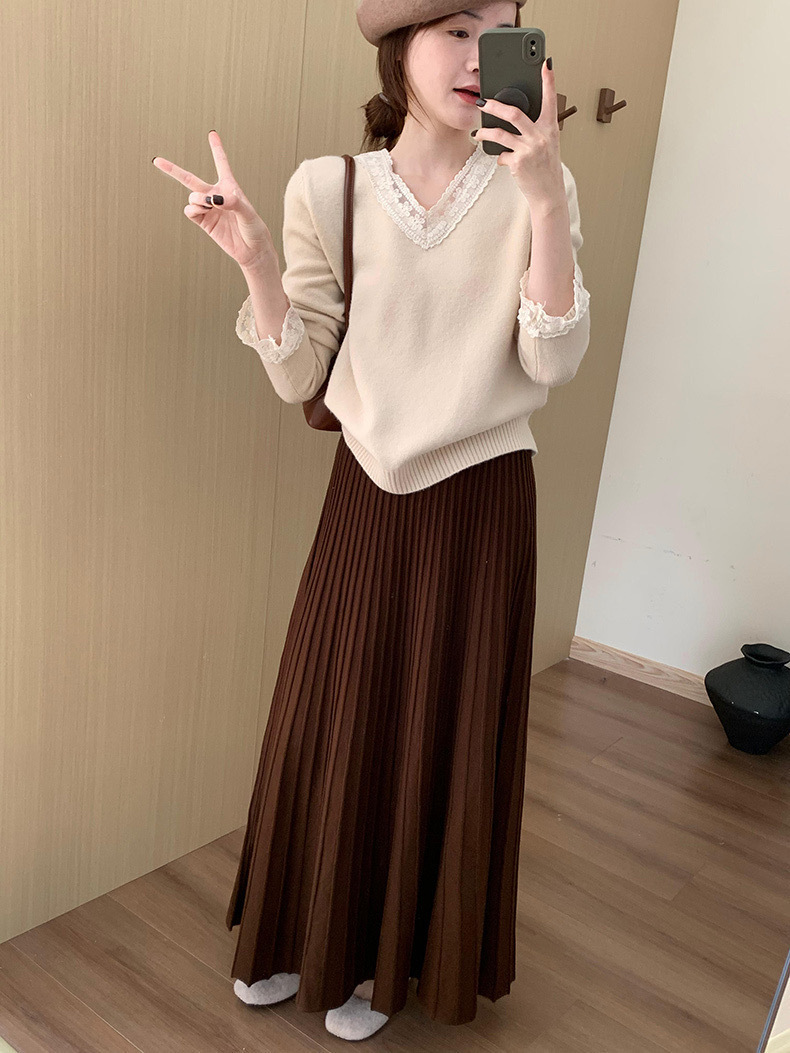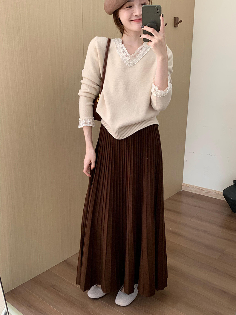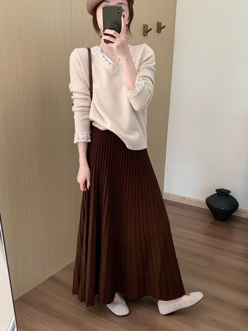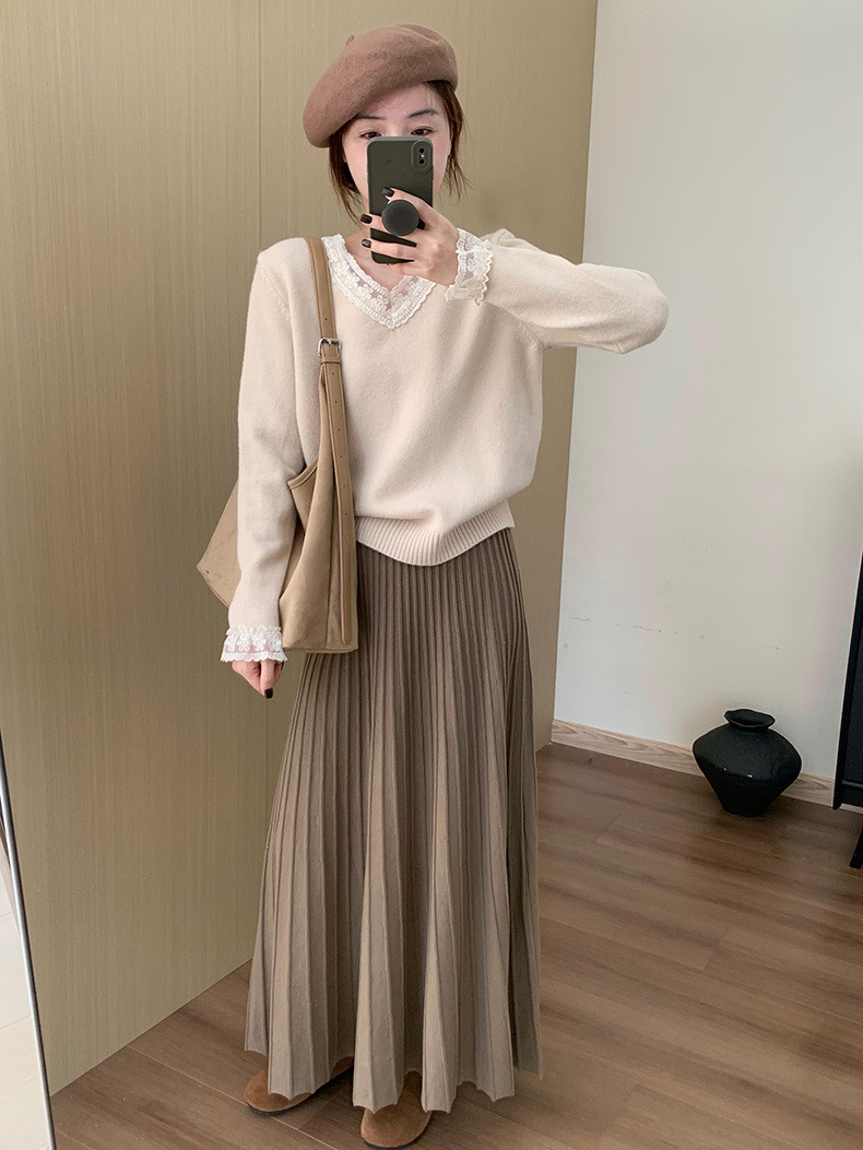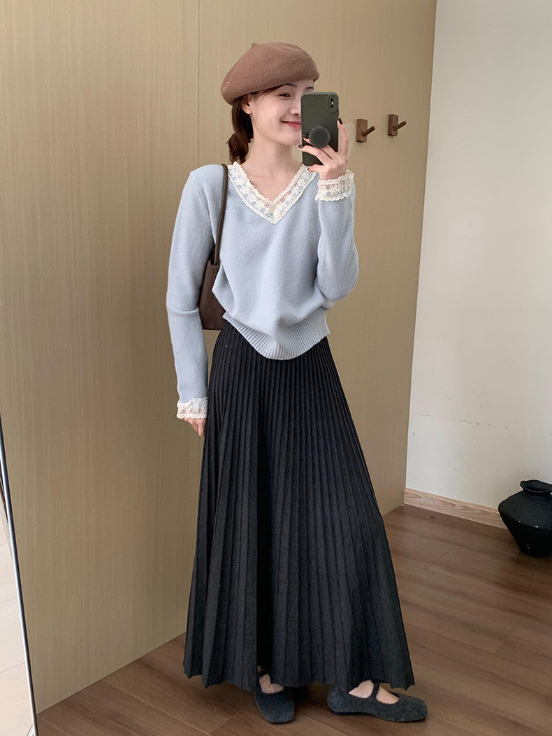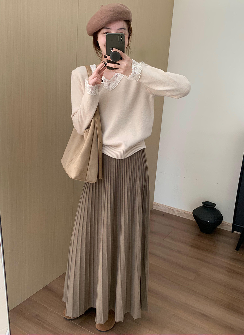 높은 허리 슬리밍 캐시미어 두꺼운 주름 치마 2024 겨울 새 한국식 올매치 캐주얼 여성 스타일 우산 스커트스토어 가기