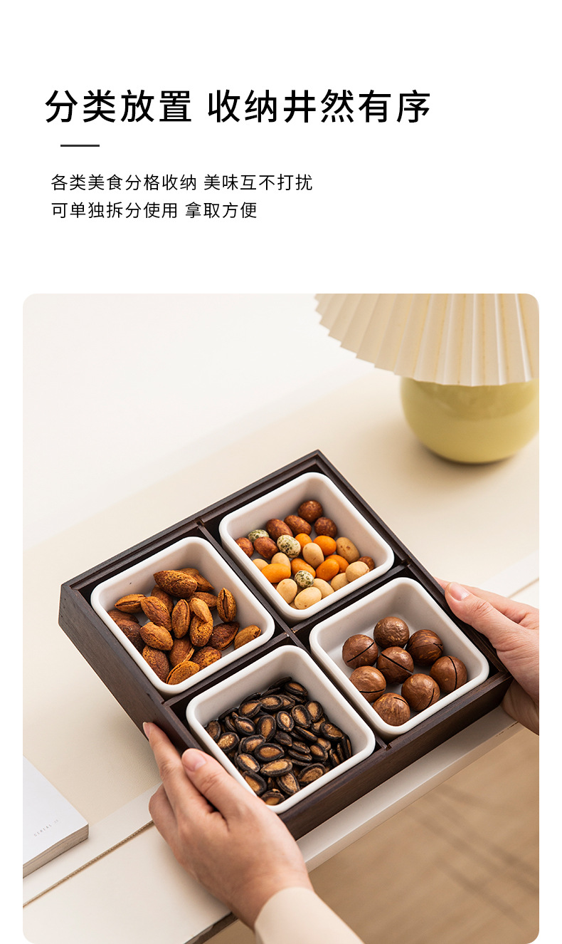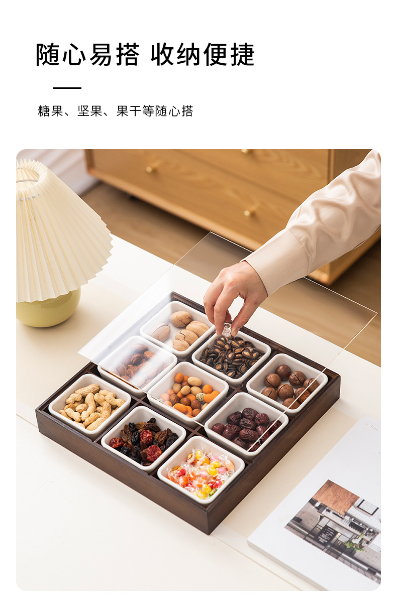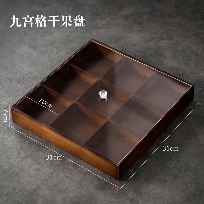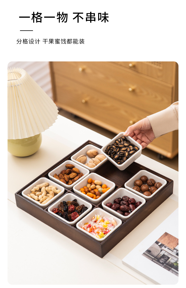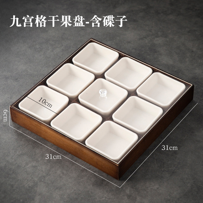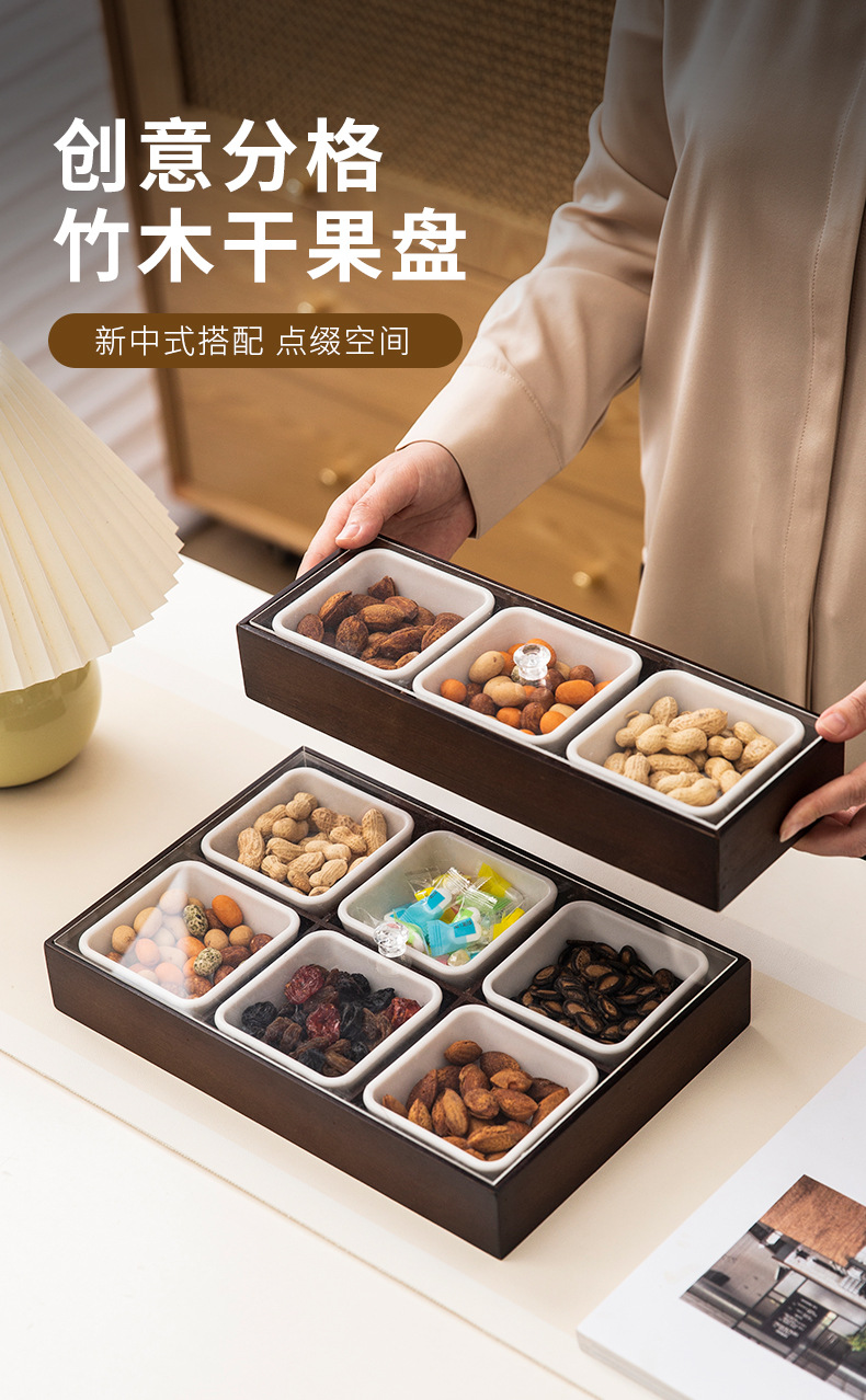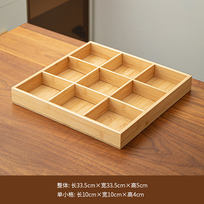 대나무 Jiugongge 말린 과일 접시 뚜껑 과일 사탕 간판 거실 가정용 딤섬 트레이 딤섬 접시 차 접시