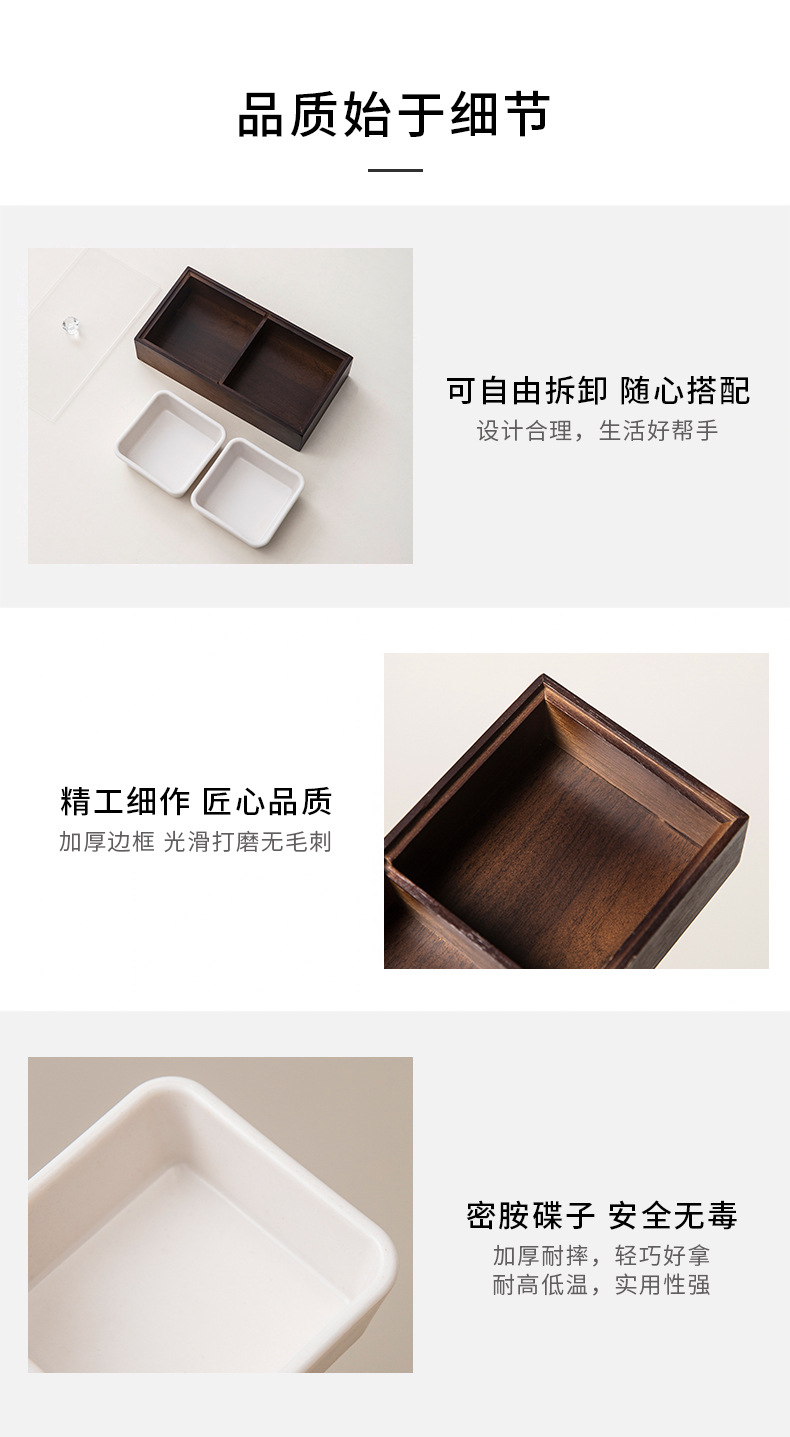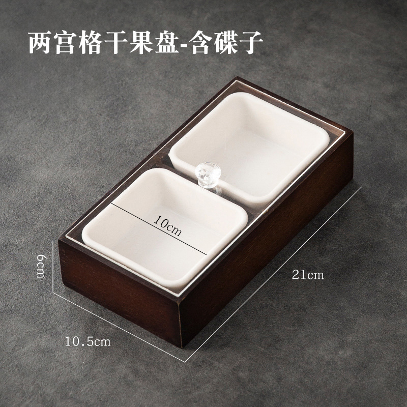 • 호두나무 색상 2단 뚜껑 달린 다과 트레이 (흰색 접시 포함)