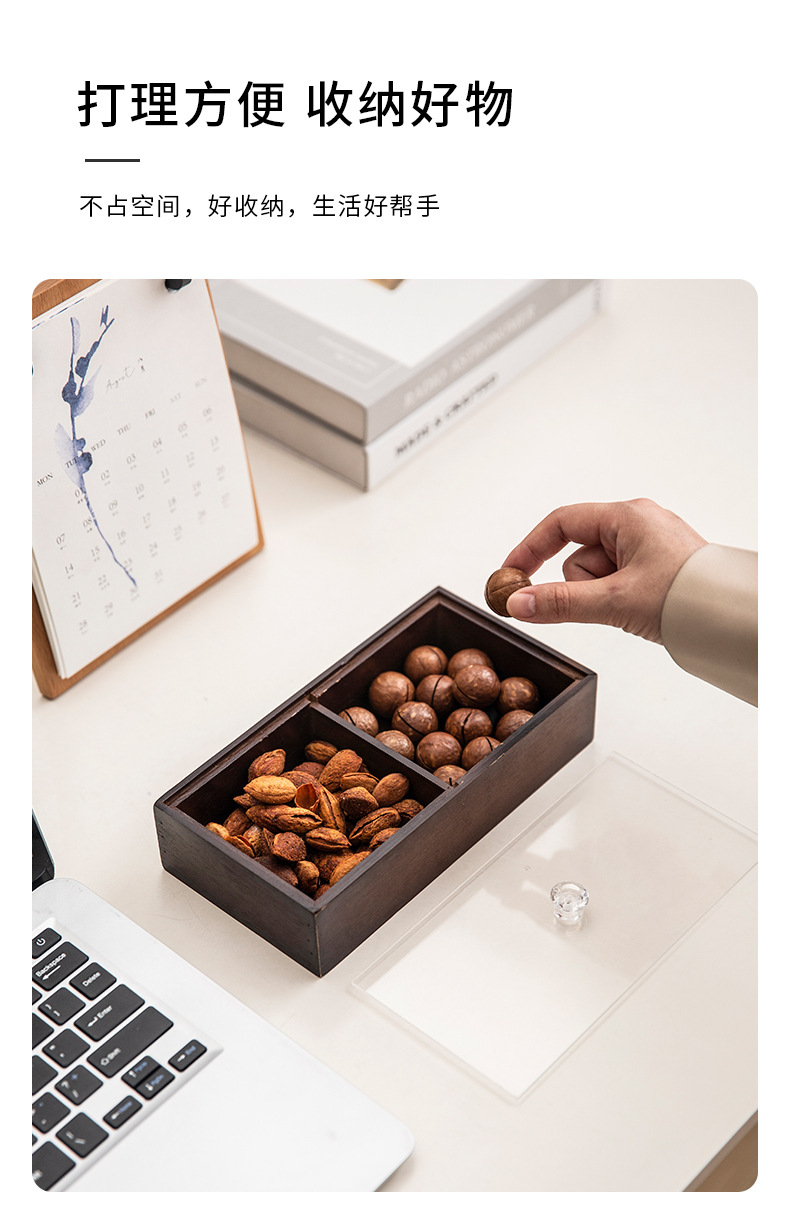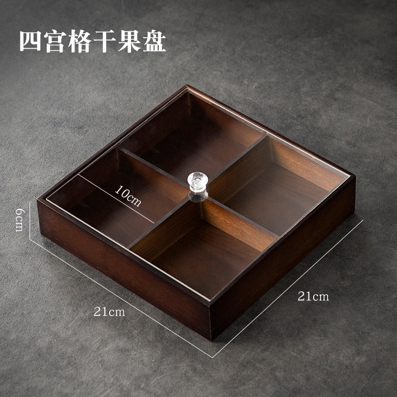 • 호두나무 색상 4구 뚜껑 달린 다과 트레이 (흰나비 장식 포함)
