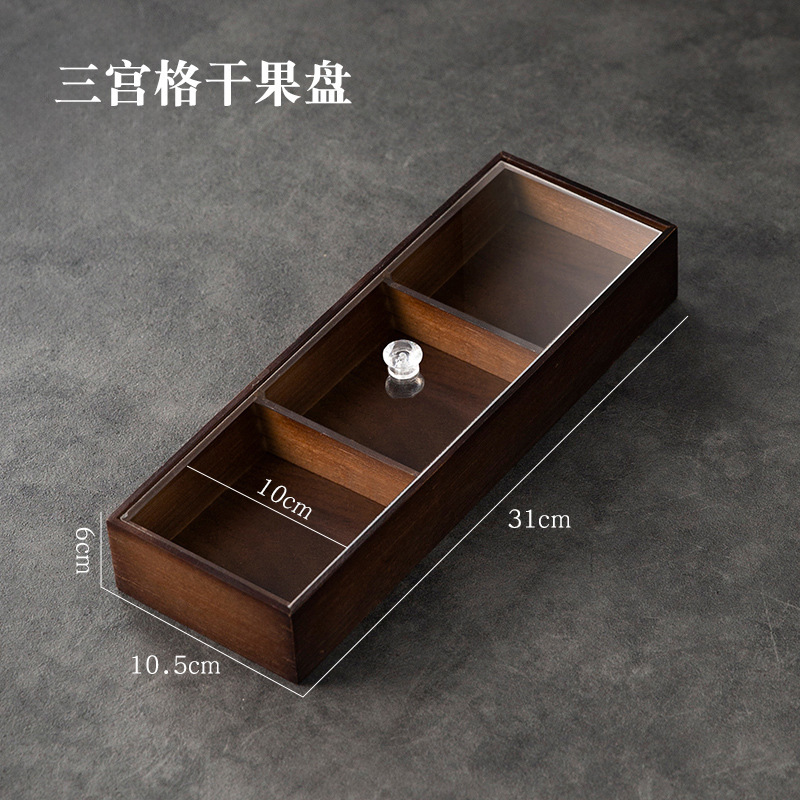 • 호두나무 3칸 뚜껑 달린 다과 트레이 (흰나비 장식 포함)