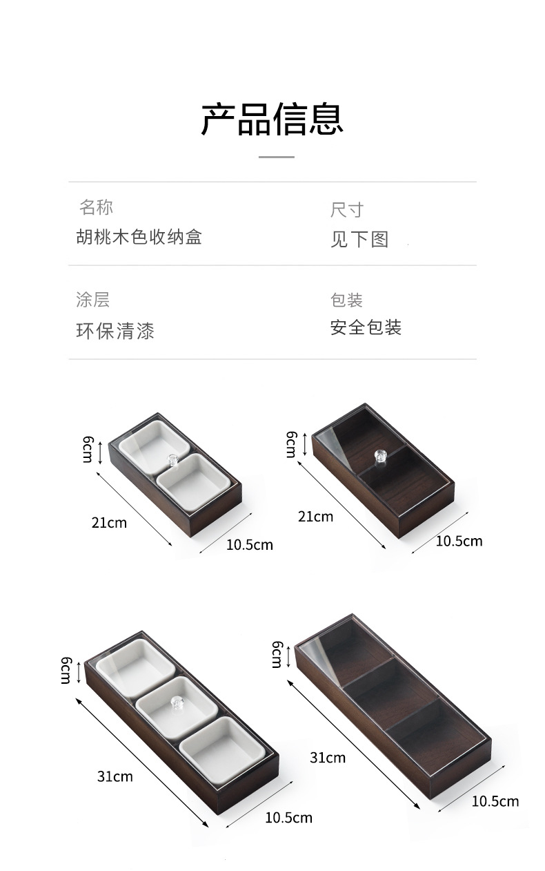 • 호두색 4각형 격자 티 트레이(뚜껑 포함)